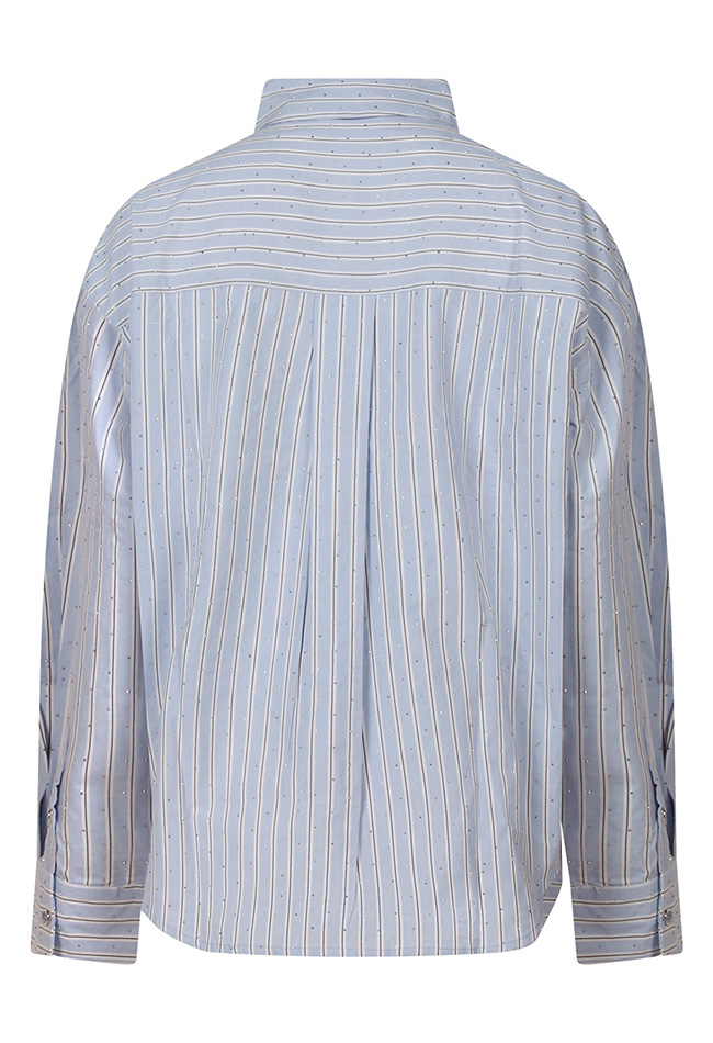 Geef je garderobe een sprankelende upgrade met deze stijlvolle oversized blouse voor dames. De blouse is uitgevoerd in een klassiek gestreept patroon en heeft een ontspannen pasvorm, waardoor hij zowel comfortabel als trendy is. Op de voorkant zorgen subtiele strass-steentjes voor een chique en speels accent, perfect om je outfit net dat beetje extra glamour te geven. Combineer hem met je favoriete jeans of een elegante rok voor een casual-chique look.