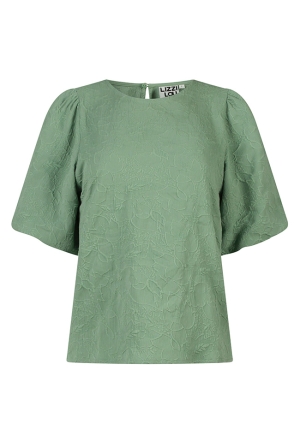 Deze sierlijke top van Lizzy Lou straalt pure vrouwelijkheid uit. Het verfijnde bloemdesign dat subtiel in de stof is verwerkt geeft de top een romantische en luxe uitstraling. De ballonmouwen zorgen voor een speels silhouet en geven het ontwerp net dat beetje extra flair. Aan de achterzijde is de top afgewerkt met een subtiele druppeluitsparing, wat zorgt voor een charmant detail. Perfect te combineren met een jeans voor een stijlvolle casual look of met een rok of pantalon voor een meer geklede outfit.