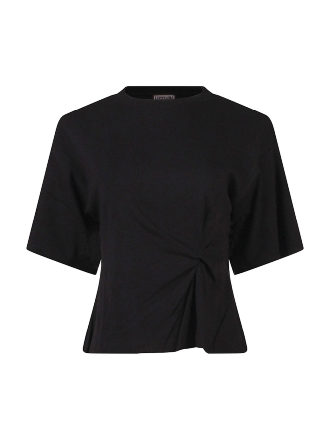 Voeg een speels en stijlvol element toe aan je casual look met dit effen dames T-shirt. Het licht cropped model met een subtiel knoopdetail in het midden benadrukt de taille en geeft je outfit direct een flatterende vorm. Gemaakt van zachte, comfortabele stof, ideaal voor dagelijks gebruik of een relaxte dag.