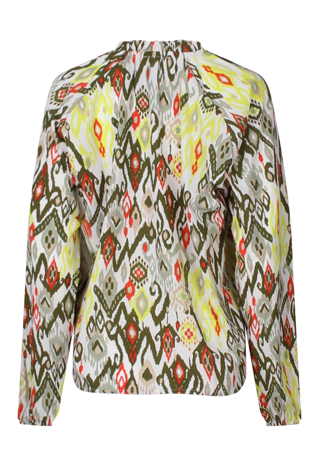 Deze top heeft een ronde hals met ruche en aan de voorkant een druppeluitsparing. Deze kan dichtgezet worden met een sierkoord. In dezelfde print is er ook een jurkje en rokje verkrijgbaar onder art.nr. Jurkje Z80444, Rokje Z80442