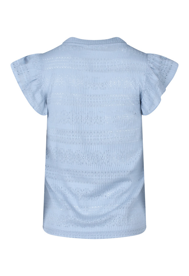 Dit T-shirt heeft ruche mouwtjes, een gestructureerd ajour patroon en een ronde hals.