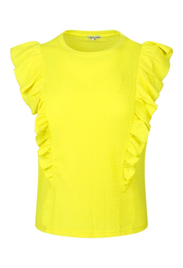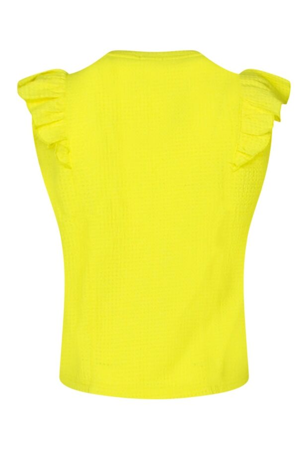 Deze singlet heeft een roezel lopen tot over de schouder.