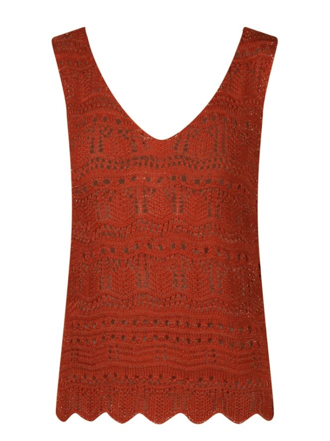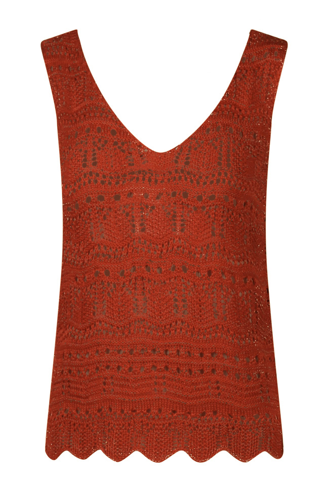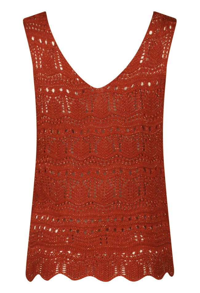 Dit gehaakte hempje in boho stijl heeft een glittertje. De onderkant heeft een golvende afwerking.