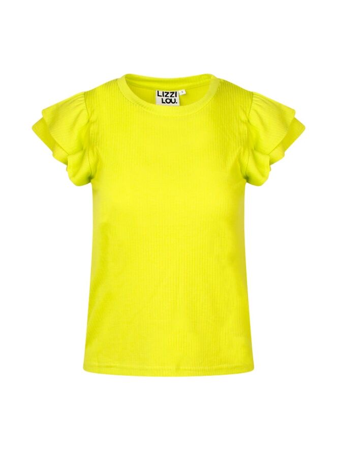 Dit T-shirt met ruchemouw heeft een ronde hals en is van een fijne ribstof.