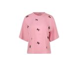 Strikjes zijn helemaal on-trend dit seizoen en komen dan ook met regelmaat voor in onze collectie van Lizzy Lou. Dit T-shirt is effen gekleurd en heeft alleen aan de voorzijde zwarte opgestikte strikjes. Het T-shirt heeft een oversized boxy fit.