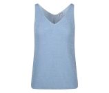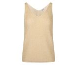 Gebreide singlet met lurex glitterdraad. Verkrijgbaar in 6 verschillende kleuren. Leuk te dragen onder een blazer of spijkerjasje maar zo gewoon op jeans of korte broek kan natuurlijk ook! Met V-hals voor en achter.
