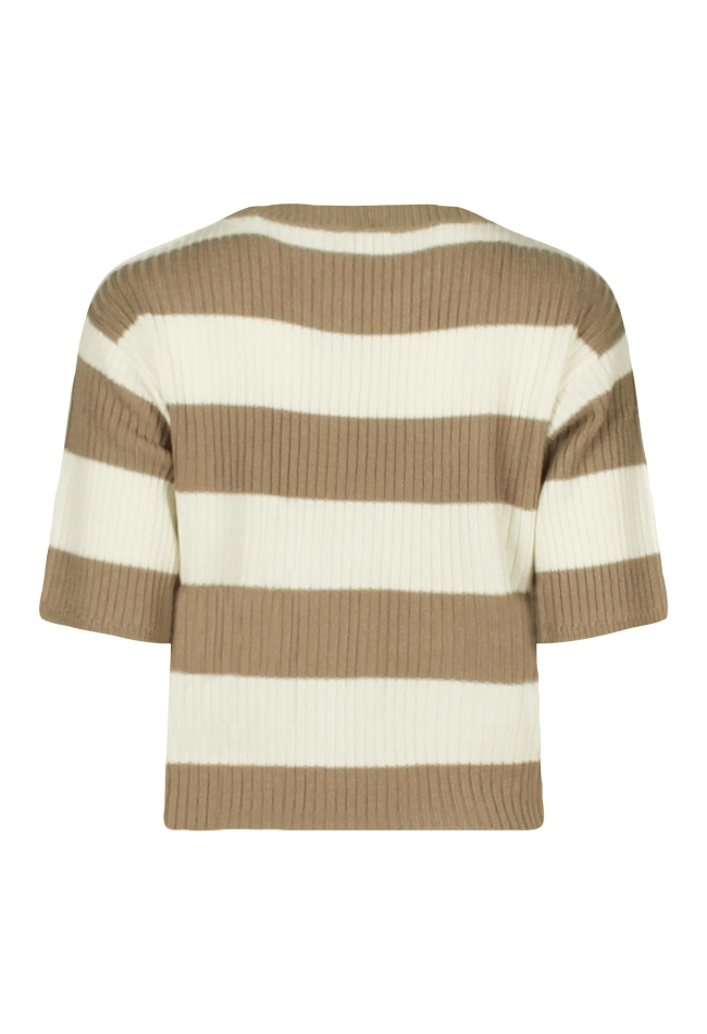 Deze trui met fijne rib heeft een korte mouw, is iets cropped en dus korter aan de onderkant. Hou je van gestreept? Dan is dit je nieuwe favoriet!