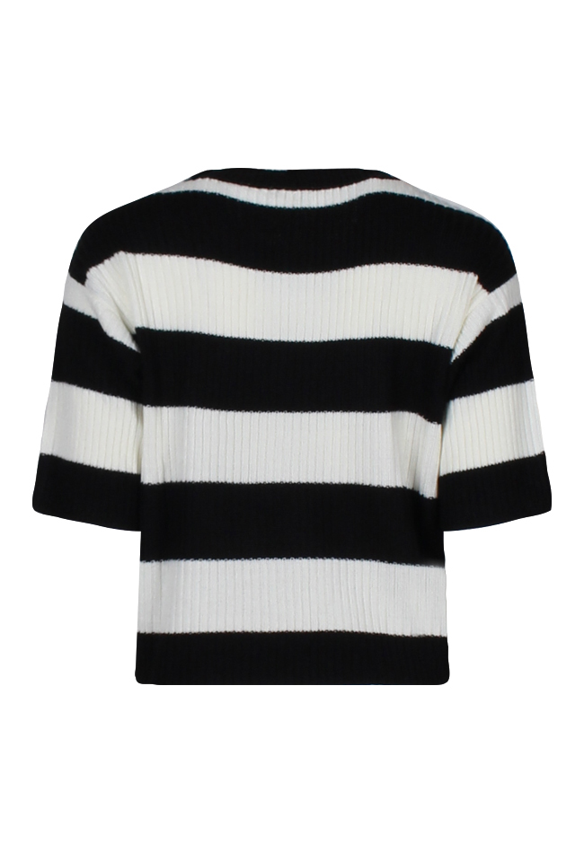 Deze trui met fijne rib heeft een korte mouw, is iets cropped en dus korter aan de onderkant. Hou je van gestreept? Dan is dit je nieuwe favoriet!