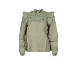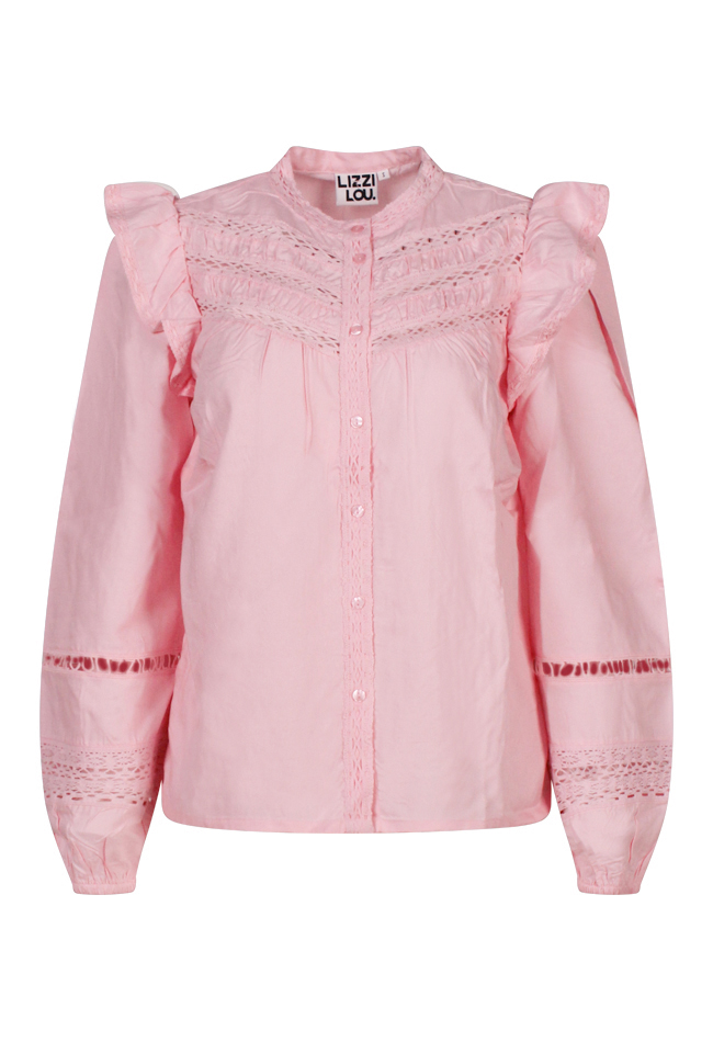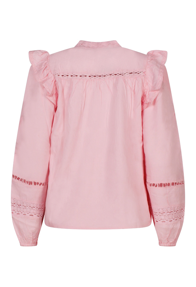 Mooie 100% viscose sierlijke blouse met veel mooie details zoals de pofmouw, vele ingezette lace stukken en ruches over de schouder. Combineer het met een leuke denim rok en vrolijke sneaker voor de ultieme voorjaars look!
