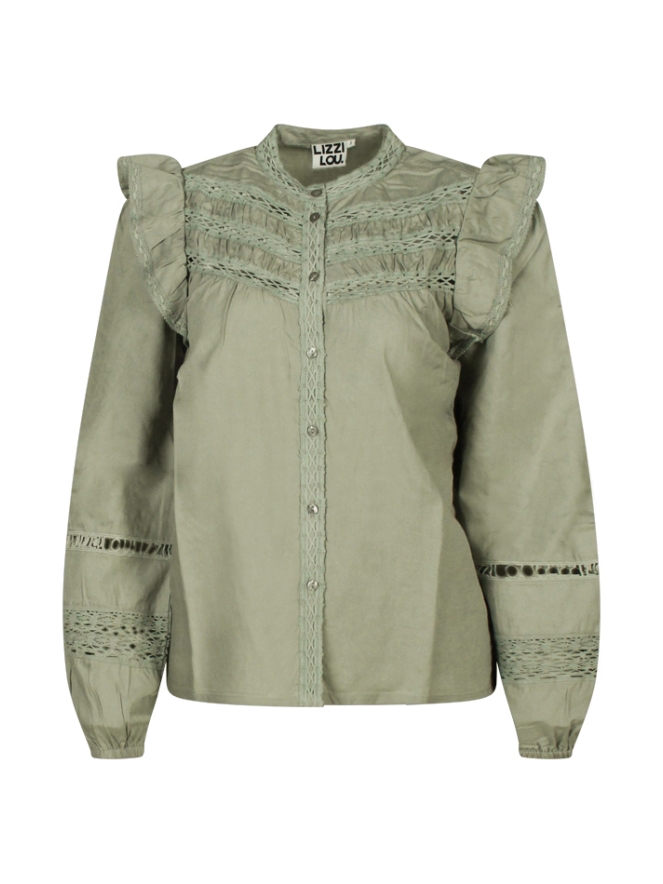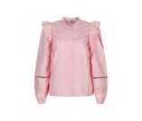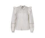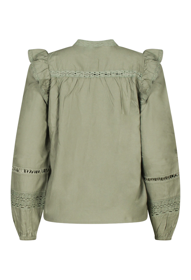 Mooie 100% viscose sierlijke blouse met veel mooie details zoals de pofmouw, vele ingezette lace stukken en ruches over de schouder. Combineer het met een leuke denim rok en vrolijke sneaker voor de ultieme voorjaars look!