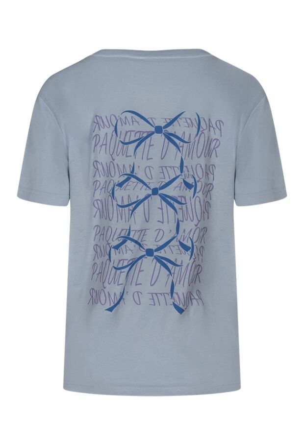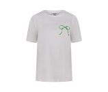 Dit dames T-shirt van Lizzi Lou uit de zomercollectie 2025 is gemaakt van 100% katoen en heeft een comfortabele pasvorm met korte mouwen en een ronde hals. De opvallende strikopdruk op de borst en de backprint met tekst en strikken geven het shirt een speelse uitstraling. Perfect voor zowel casual als feestelijke gelegenheden. Was het shirt binnenstebuiten op 40 graden en strijk het op lage temperatuur voor langdurig draagplezier.