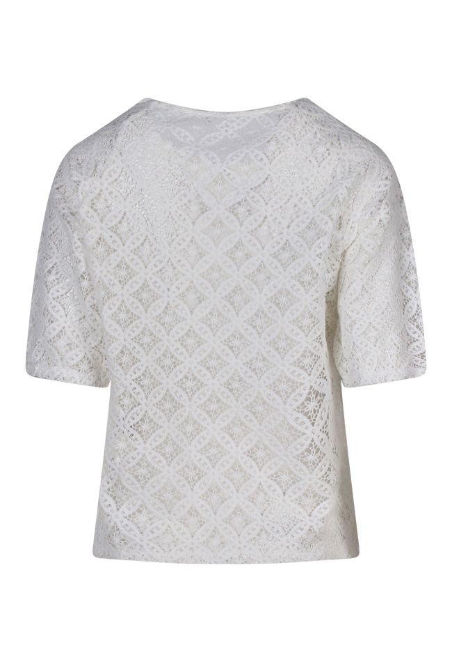 Deze dames top van crochet stof straalt een boho-sfeertje uit en is perfect voor zomerse dagen. De ronde hals en korte mouwen zorgen voor een comfortabele pasvorm, terwijl de opengewerkte structuur een luchtige en stijlvolle touch toevoegt. Combineer met een denim short of een flowy rok voor een trendy zomerlook.