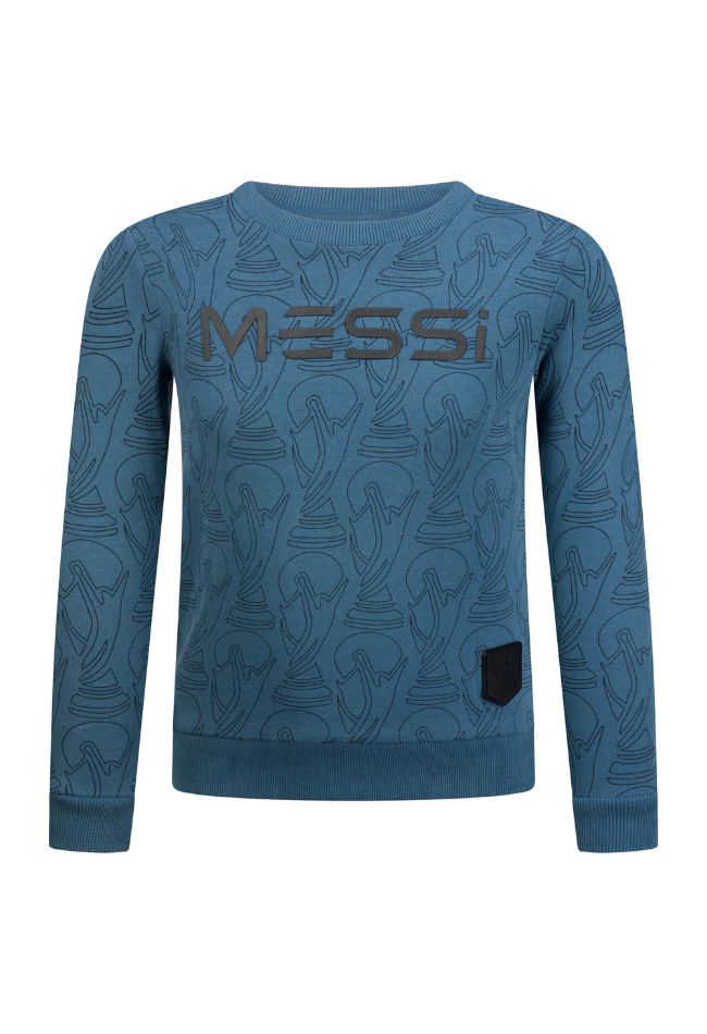 Sweater van messi met ronde hals. De kleinste maatjes hebben knopen op de schouder.