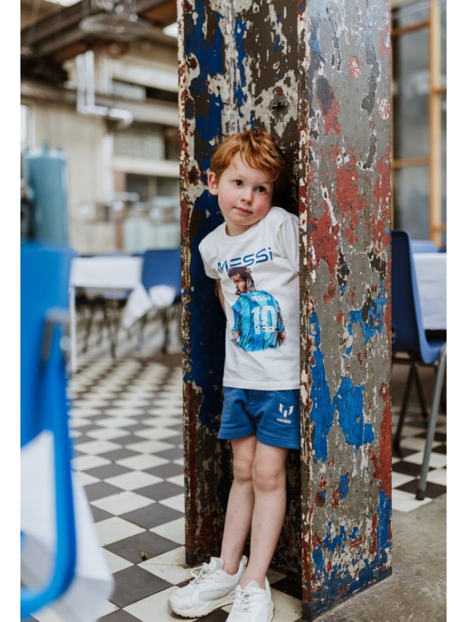 Dit jongens T-shirt heeft op de voorkant een grote Messi print.