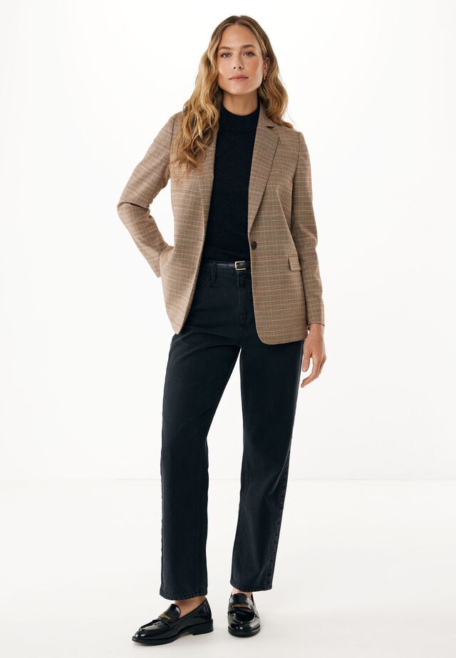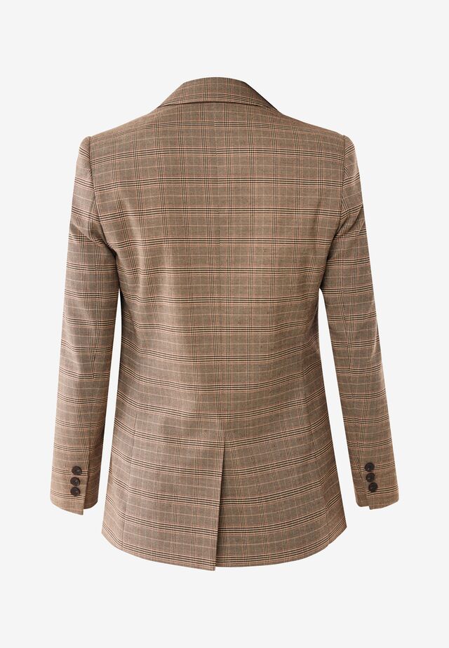 Prachtige geruite blazer in mooie bruintinten. Deze checked blazer valt mooi op lengte en is mooi te combineren op een nette pantalon of jeans. P.S. de bijpassende pantalon is ook bij ons verkrijgbaar.