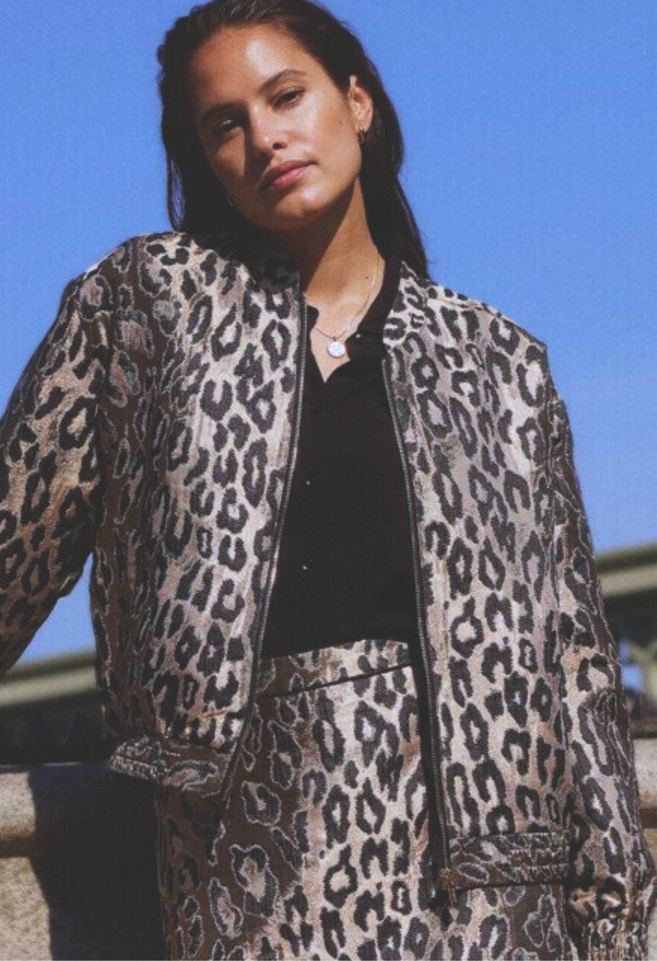 Prachtig blazerjack met tijdloze panterprint. Dit vestjack heeft 2 fijne steekzakken en doet het goed op jeans. Het bijpassende rokje op de foto is ook bij ons verkrijbaar.