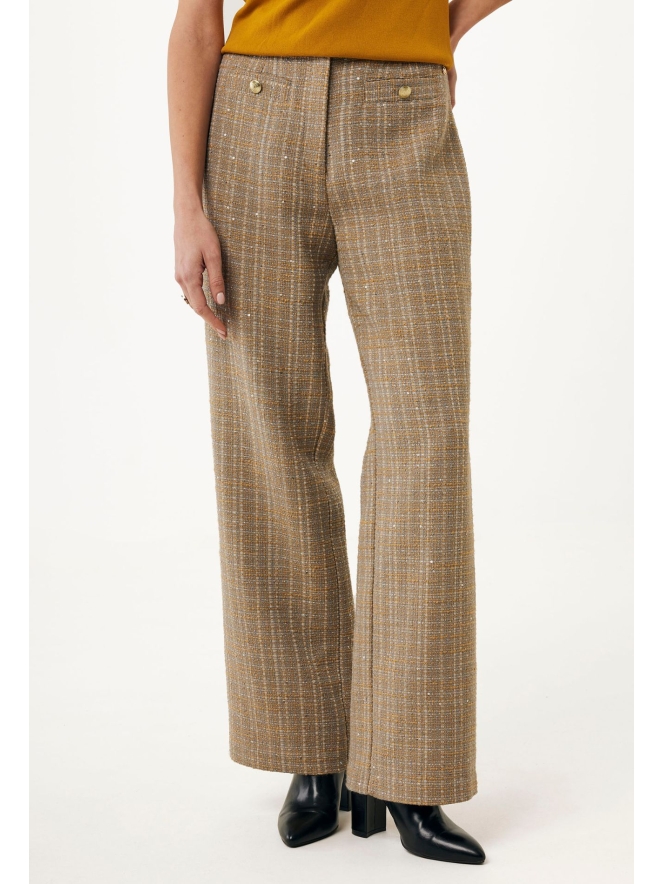 Deze stijlvolle straight fit broek voegt klassieke elegantie aan je garderobe toe met een verfijnde multicolor tweed patroon. Gemaakt van polyester voor optimaal draagcomfort, biedt deze broek een tijdloze look dankzij de rechte pijpen en uitgesproken knoopdetails. Combineer gemakkelijk met een effen blouse of lichtgekleurde trui voor een verfijnde, dagelijkse outfit.