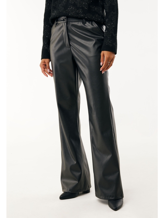 Voor een stoere en eigentijdse look is deze PU leather broek je ultieme statement piece! Met fijne steekzakken en sier paspelzakken achterop .