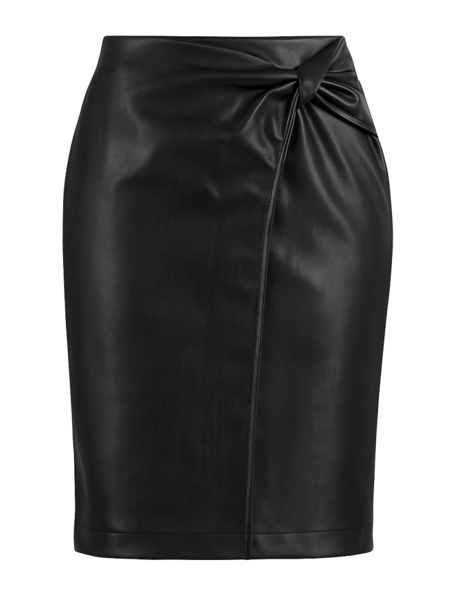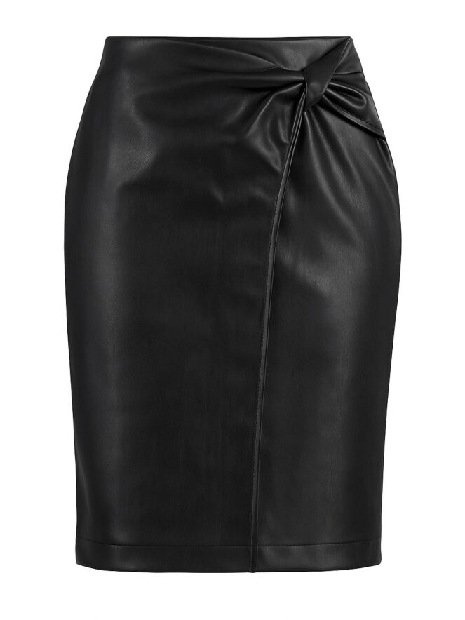 Deze PU leather rok van Mexx heeft een knoopdetail linksvoor en een blinde rits aan de achterkant. Hij valt over de knie en zorgt daardoor voor een nette afgeklede look.