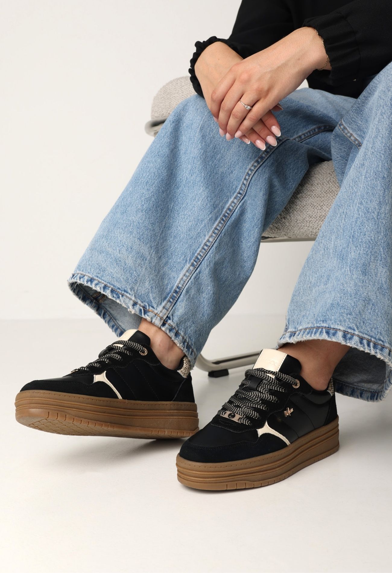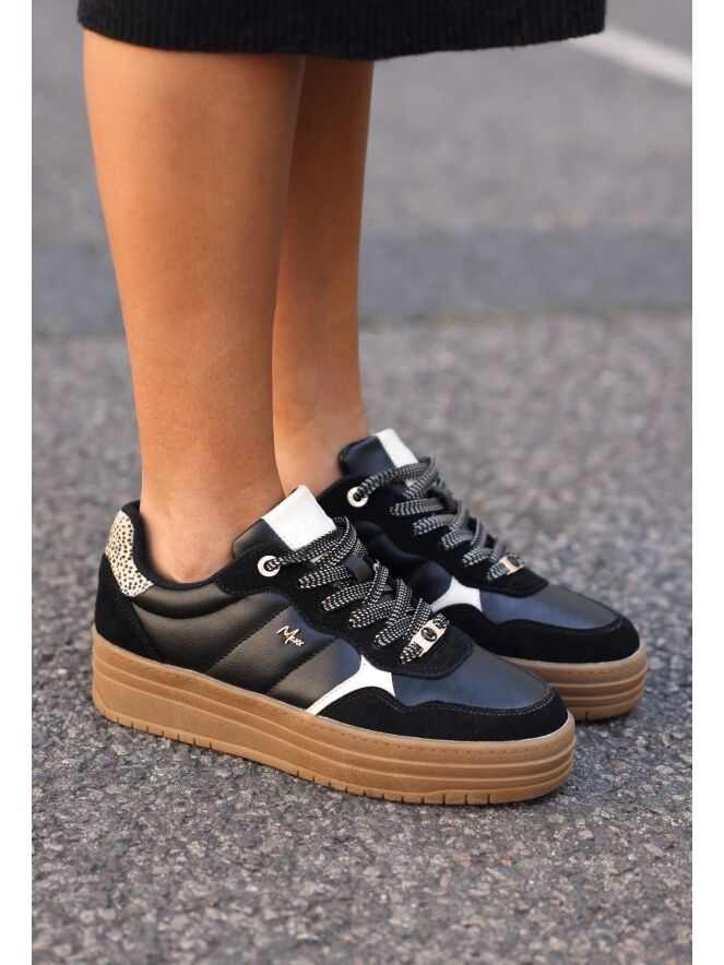 Trendy sneaker van Mexx met een platte dikkere zool. Deze schoen heeft leuke details in creme en goudtinten. Matcht bij vele outfits door de relatief neutrale kleuren en lopen ook nog eens heerlijk. Deze hippe trendy sneaker heeft een uitneembaar voetbed.