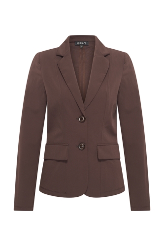 Travel blazer van Mi Piace. Een goede basis voor in iedere kledingkast. Met bijna ieder seizoen een frisse nieuwe kleur. Nieuwste kleur Espresso!