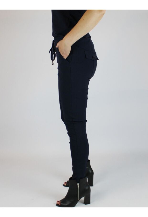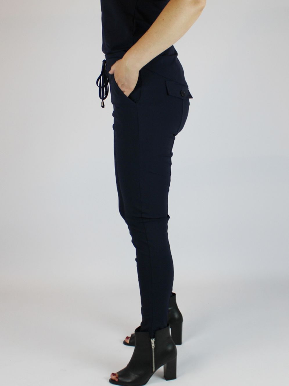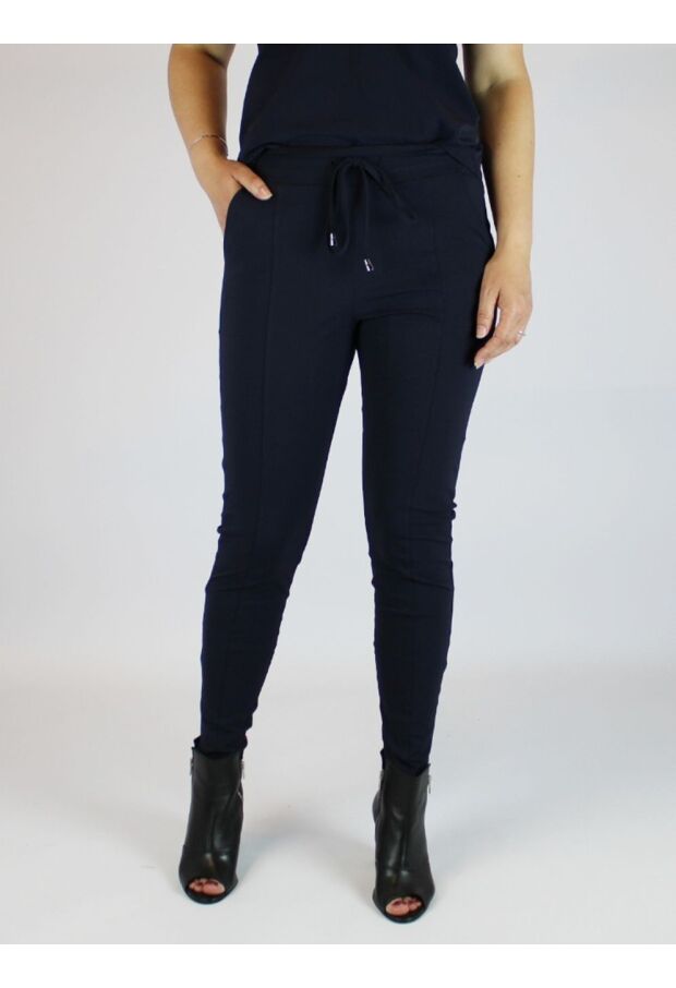 Comfortabele broek van travel stof. Deze broek heeft een touwtje door de taille en is een slim fit model. Valt op maat. Met heerlijke steekzakken en kleed netjes af.