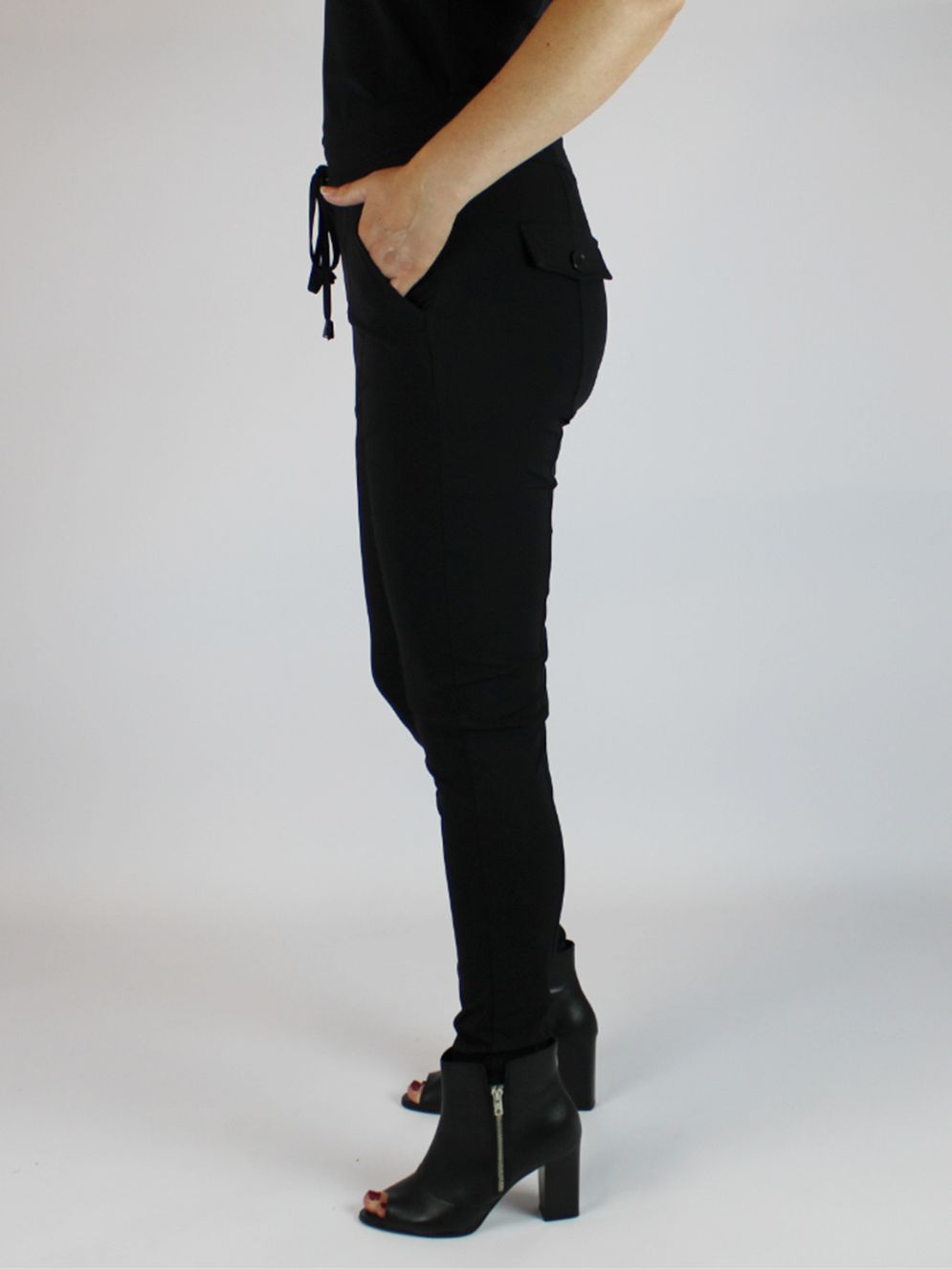 Comfortabele broek van travel stof. Deze broek heeft een touwtje door de taille en is een slim fit model. Valt op maat. Met heerlijke steekzakken en kleed netjes af.