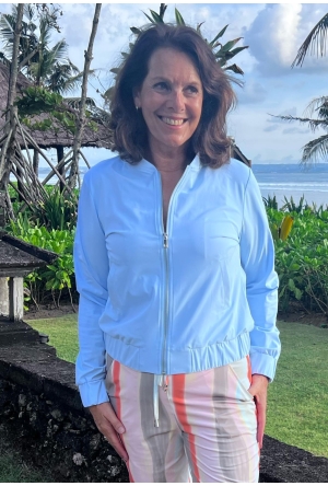 Deze basic singlet heeft een gekleurde bies. Bestaat uit 50% katoen en is een wat dikker exemplaar. De kleur matcht perfect met de blazer met art.nr. 202667