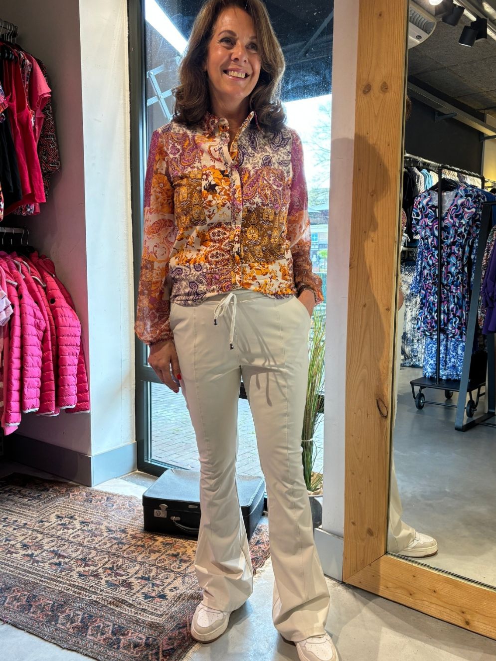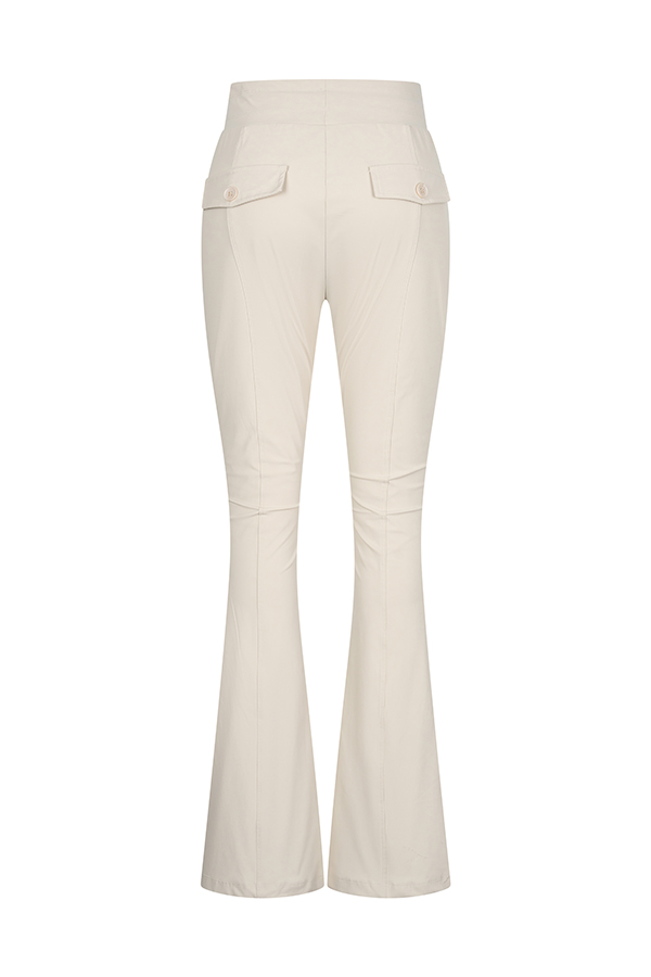 Nette flair broek gemaakt van travel stof zoals je het gewend bent van Mi Piace. Met steekzakken en twee sier klepzakken achterop.