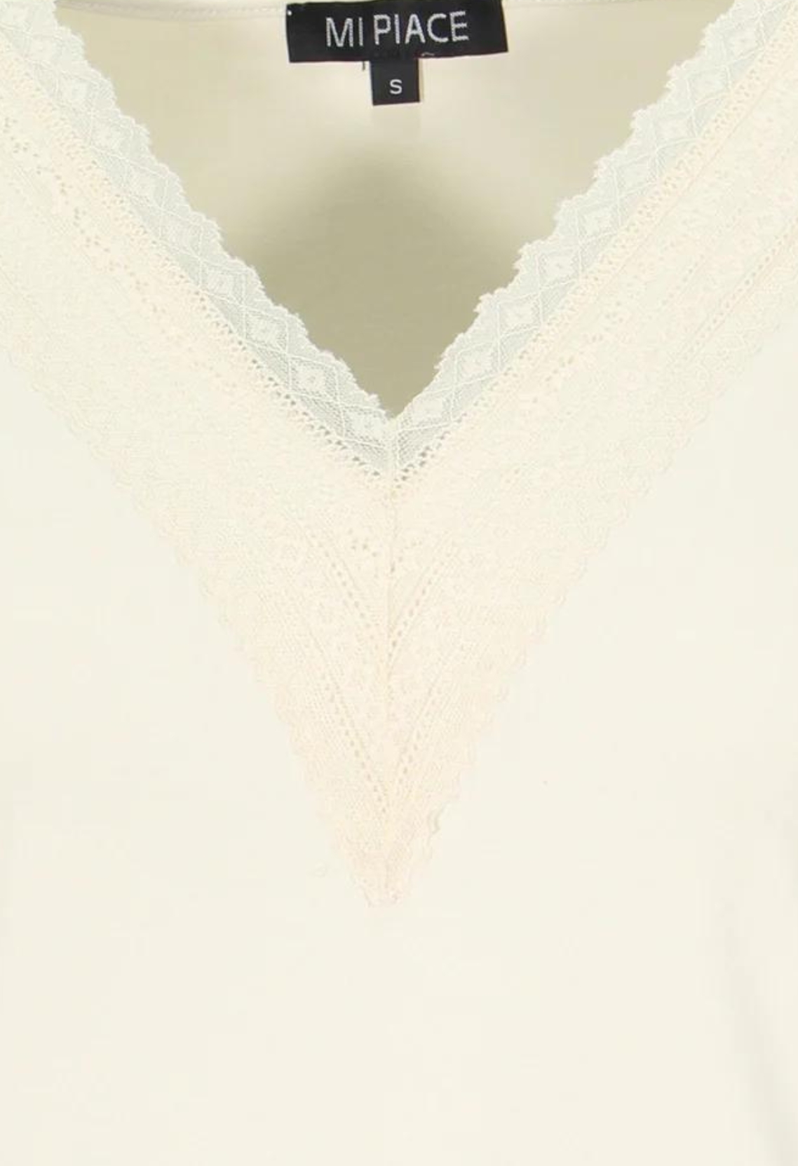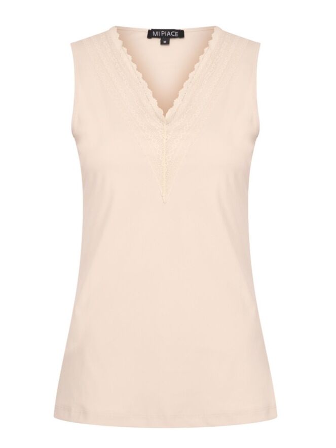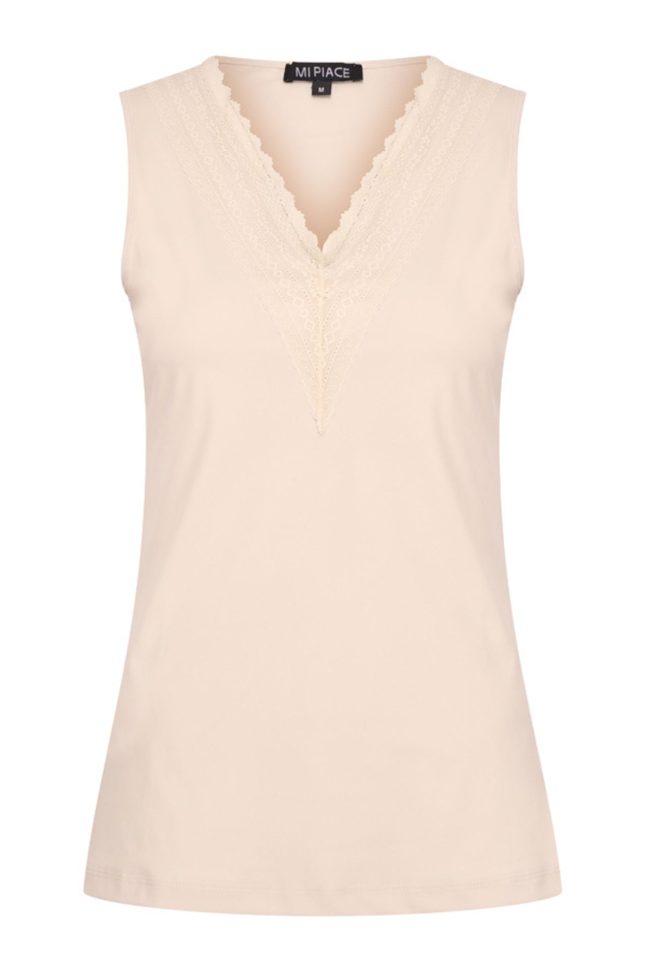 Deze basic singlet van Mi Piace met sierlijke V hals is perfect onder een blazertje maar ook zo te dragen. Door de travel stof draagt dit hemdje heerlijk!