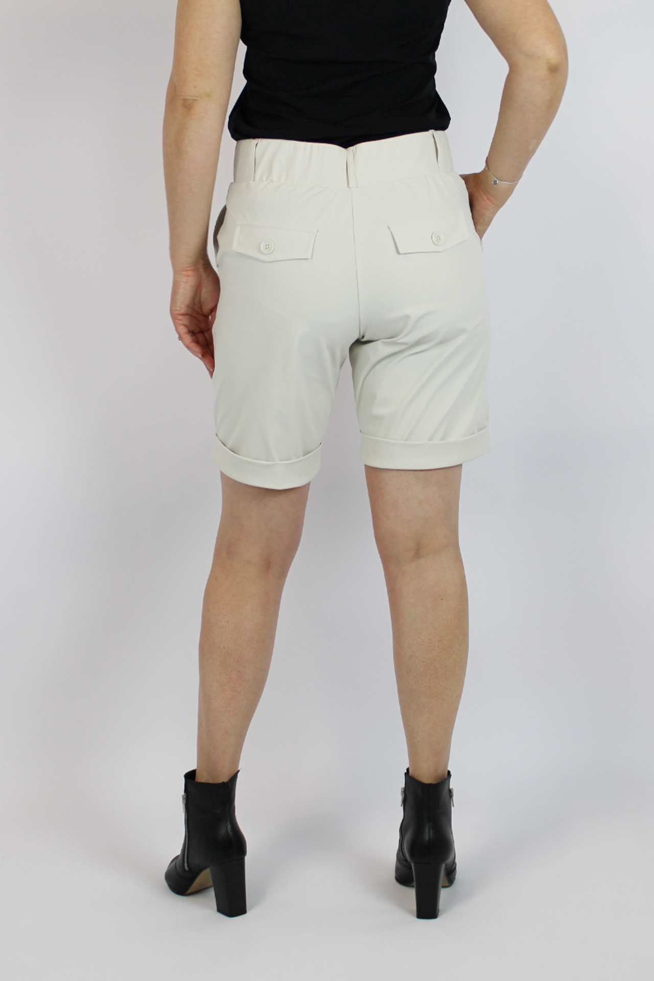 Gek op comfy Travel stof? Dan mag je deze nette klassieke travel bermuda niet missen. Ga voor comfort en een uiterst nette look en kies voor Mi Piace. Deze short zul je met net zoveel plezier dragen als de broeken en zijn makkelijk te combineren met een leuke top, T-shirt en je leukste zomershoen! Stop hem in de wasmachine en hij is zomaar droog en kreukt niet!