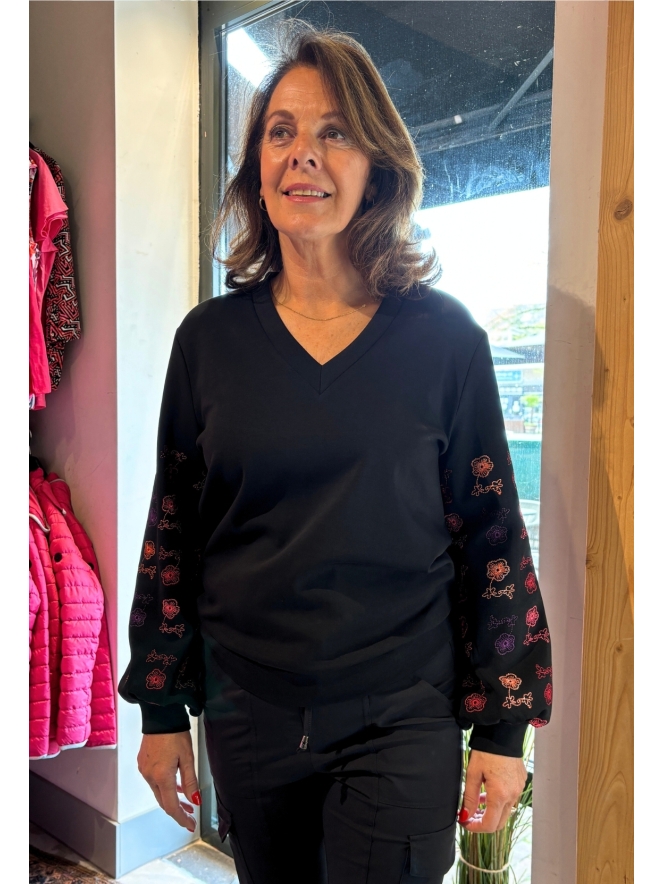 Als je fan bent van travel dan is dit je nieuwe verslaving. Maak kennis met de sweaters van Mi Piace! Met zijn V-hals vooraan geeft deze sweater een elegant silhouet, terwijl de super zachte stof zorgt voor ultiem comfort. Je zult verliefd worden op de zachtheid van deze stof, waardoor het een favoriet wordt in je kledingkast. En heb je de geborduurde paisley print op de mouwen al gezien?