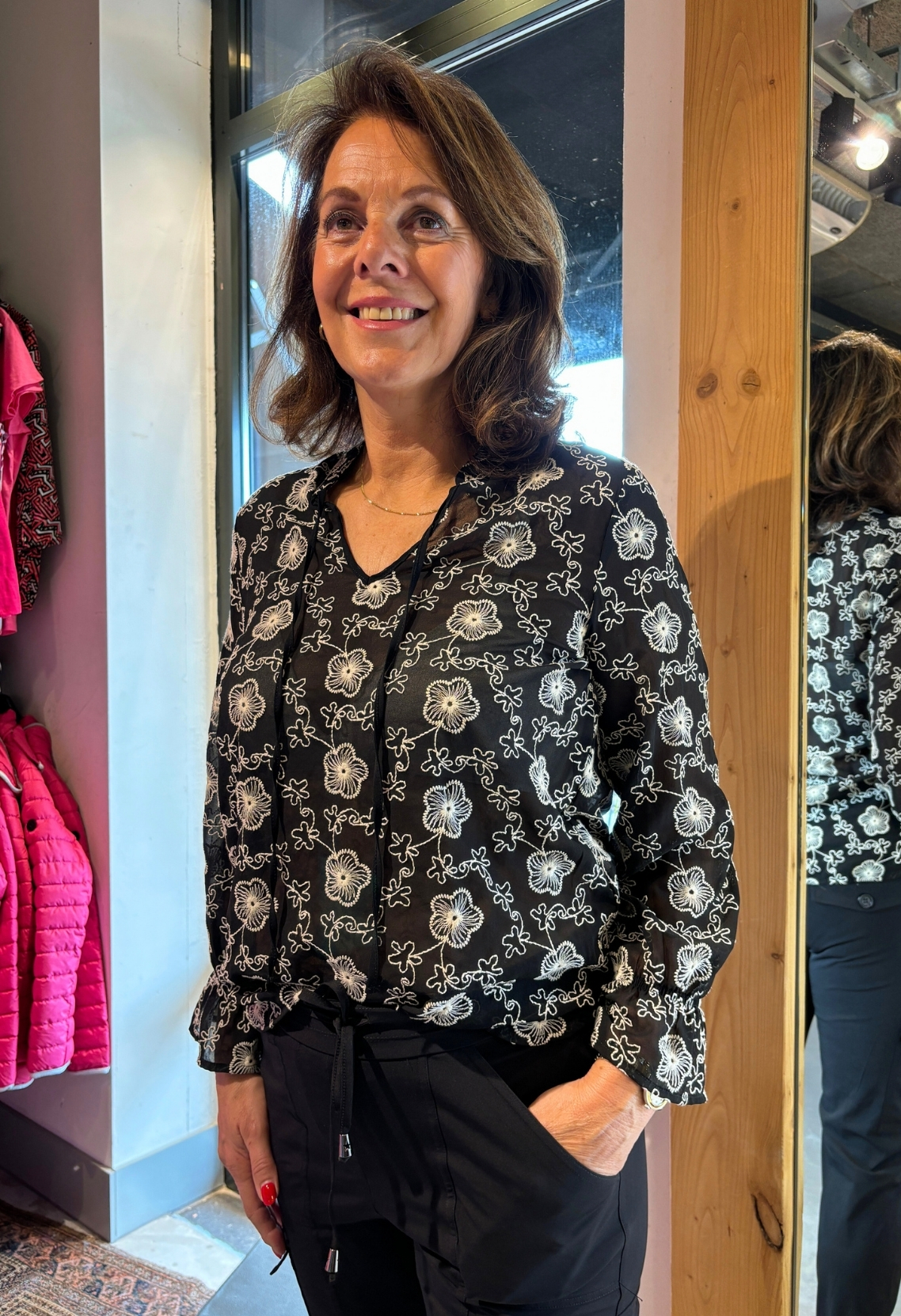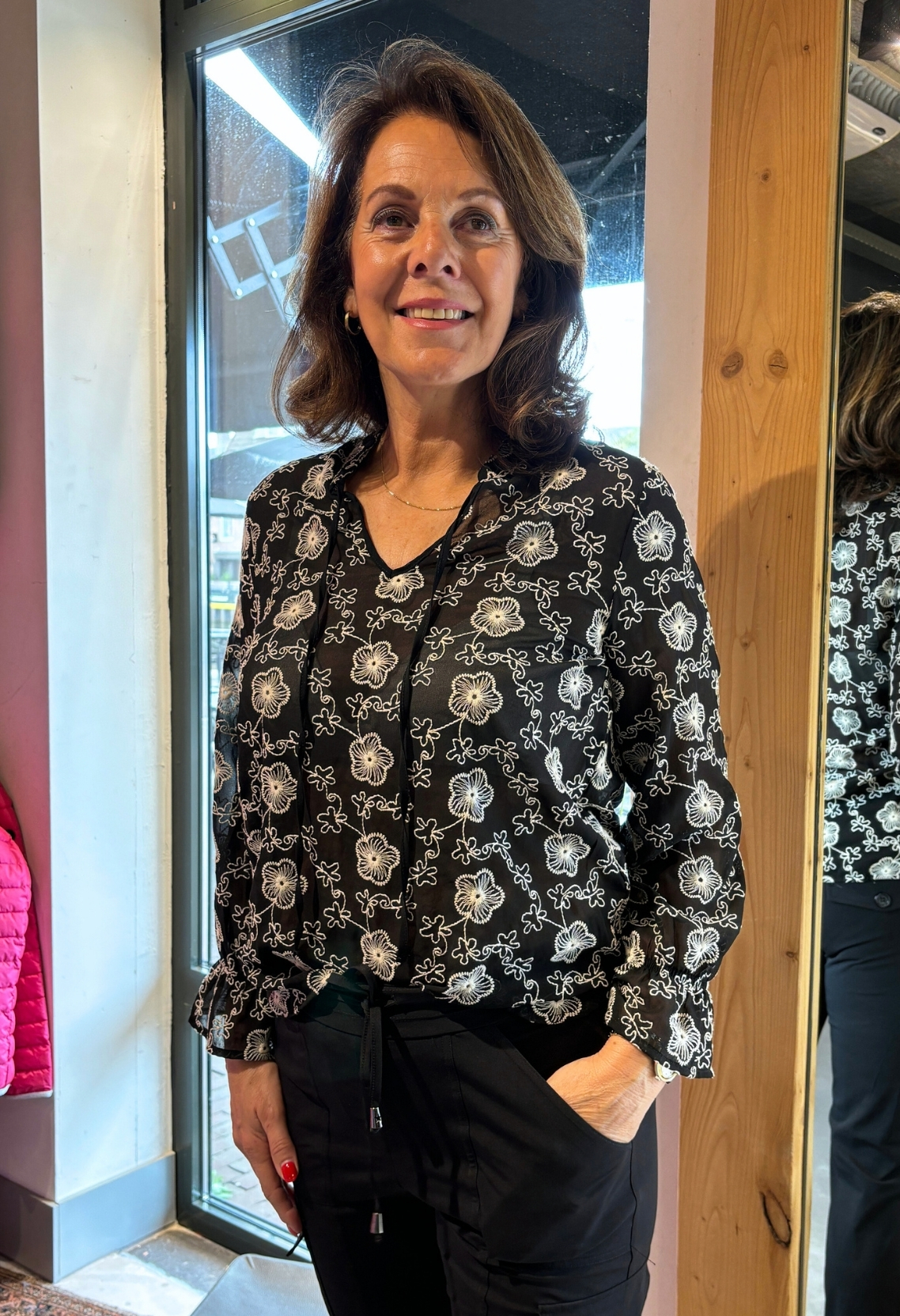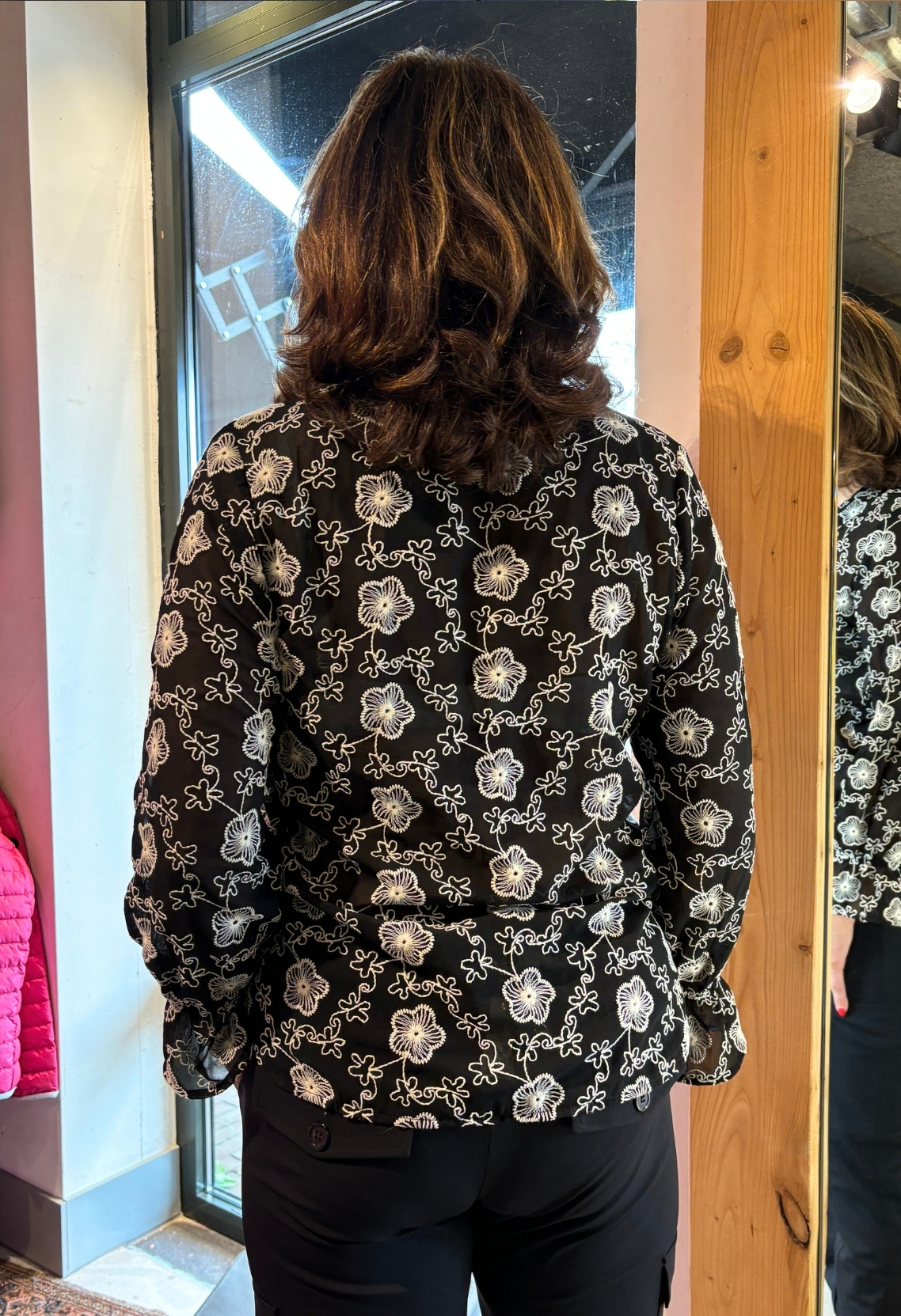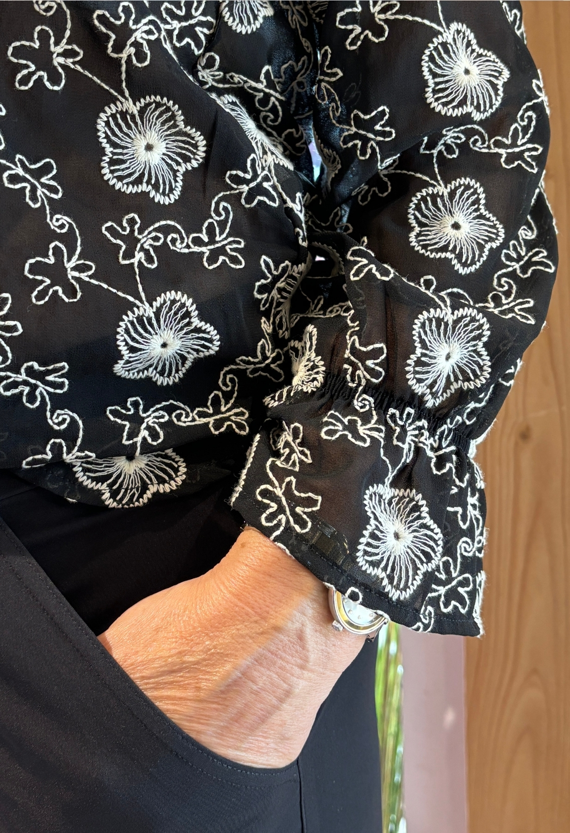 Chiffon blouse met all over bloem borduur.
