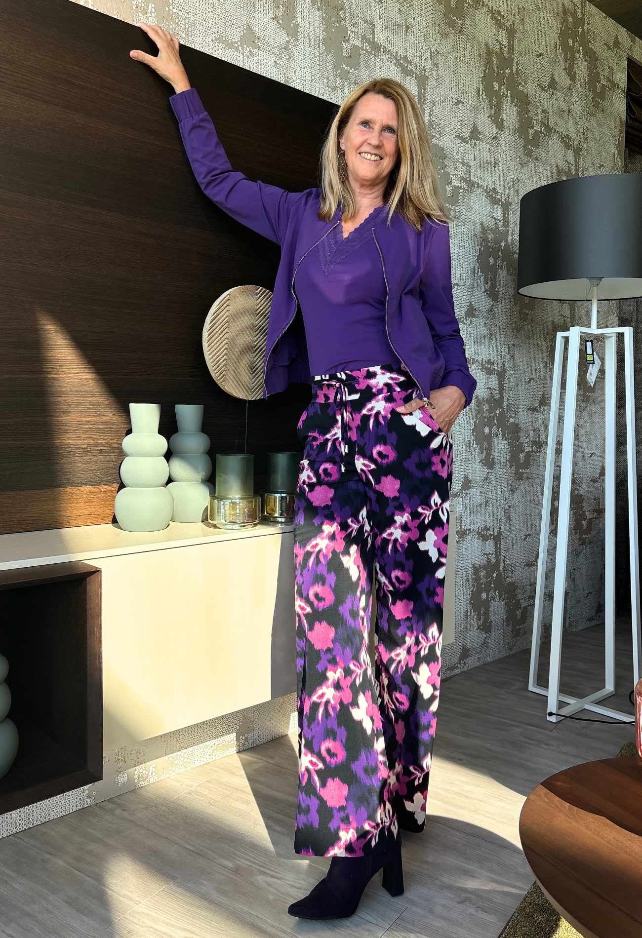 Alle trendy broeken fans opgelet! Deze rechte Travel broek heeft het hipste printje van dit moment! Faded Flowers is helemaal on-trend en wil graag met jou gezien worden! Durf jij het aan? Dit pareltje is een wijd leg recht model met fijne steekzakken en sier klepzakjes achterop. Geen gulp maar een heerlijke tailleband die je eenvoudig iets strakker trekt met het welbekende koordje. Go for it!