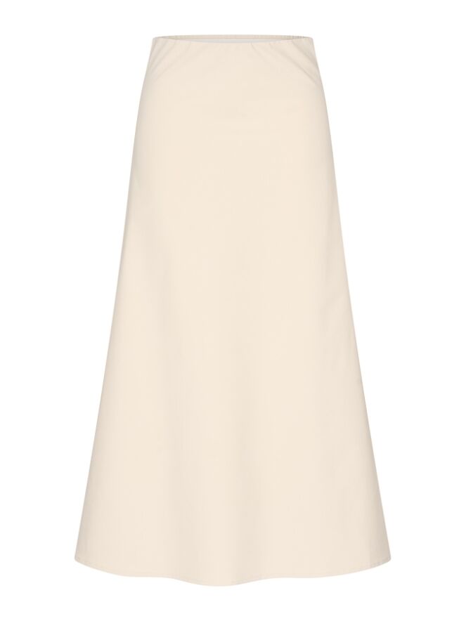 Deze lange rok in de kleur kit, vergelijkbaar met de kleur van zand is een iets uitlopend model. Van de welbekende travelstof van Mi Piace. Leuk te combineren met een sporty sneaker, leuke top of T-shirt en eventueel een giletje. Draagt soepel en comfortabel.