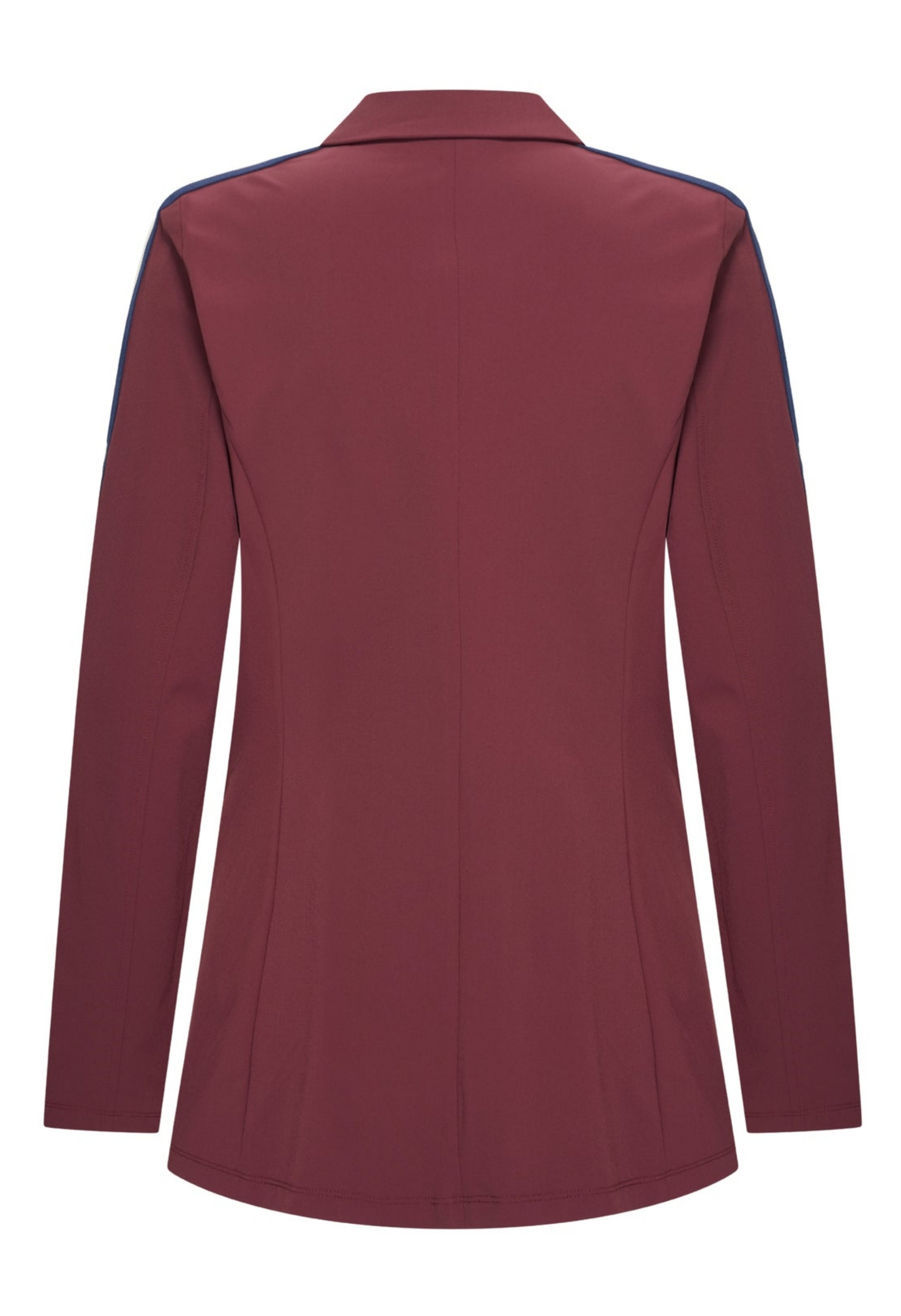 De bordeaux is op de foto met een marine streep baan maar het betreft dus een zwarte streep.