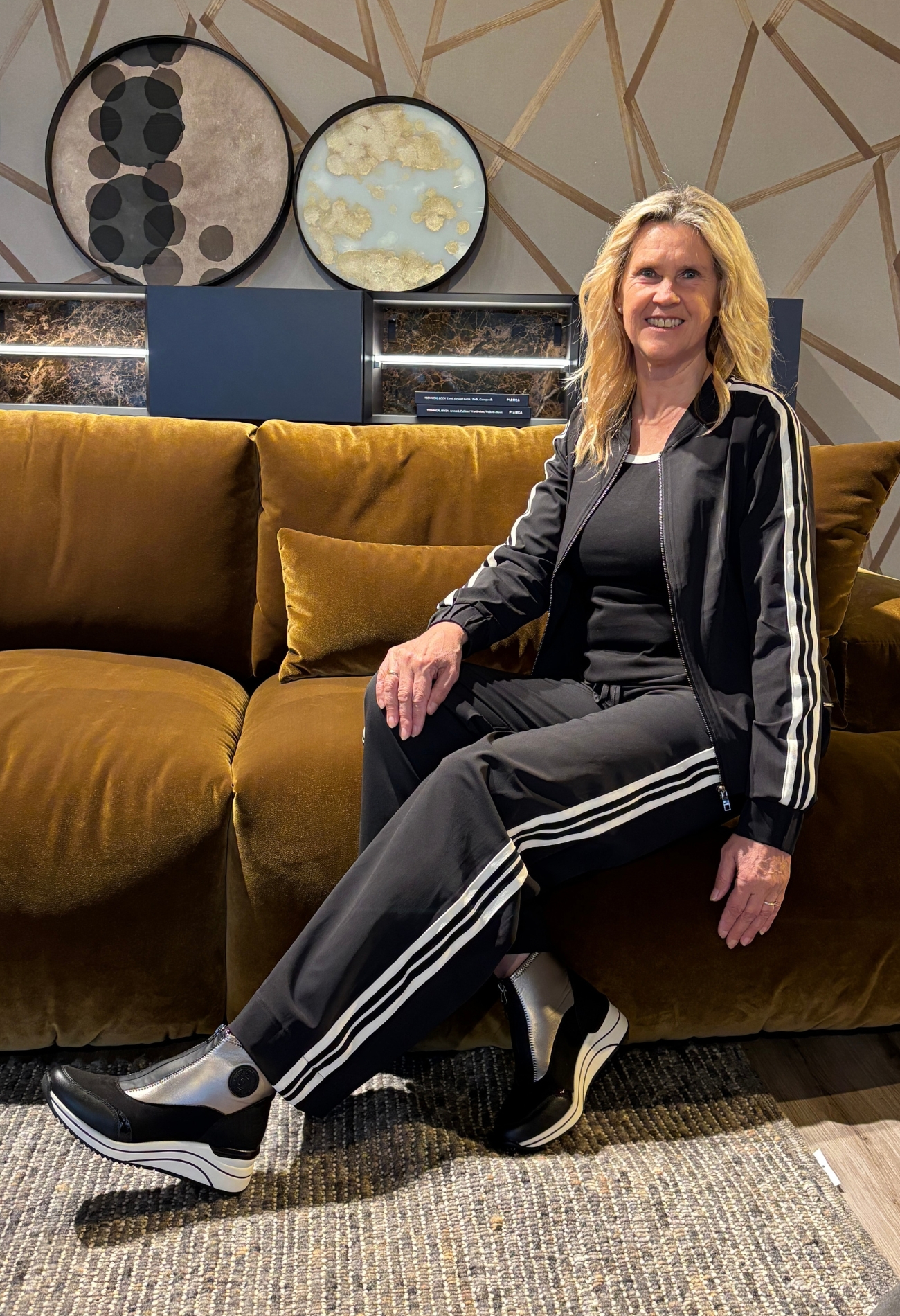 De bordeaux is op de foto met een marine streep maar het betreft dus een zwarte streep.