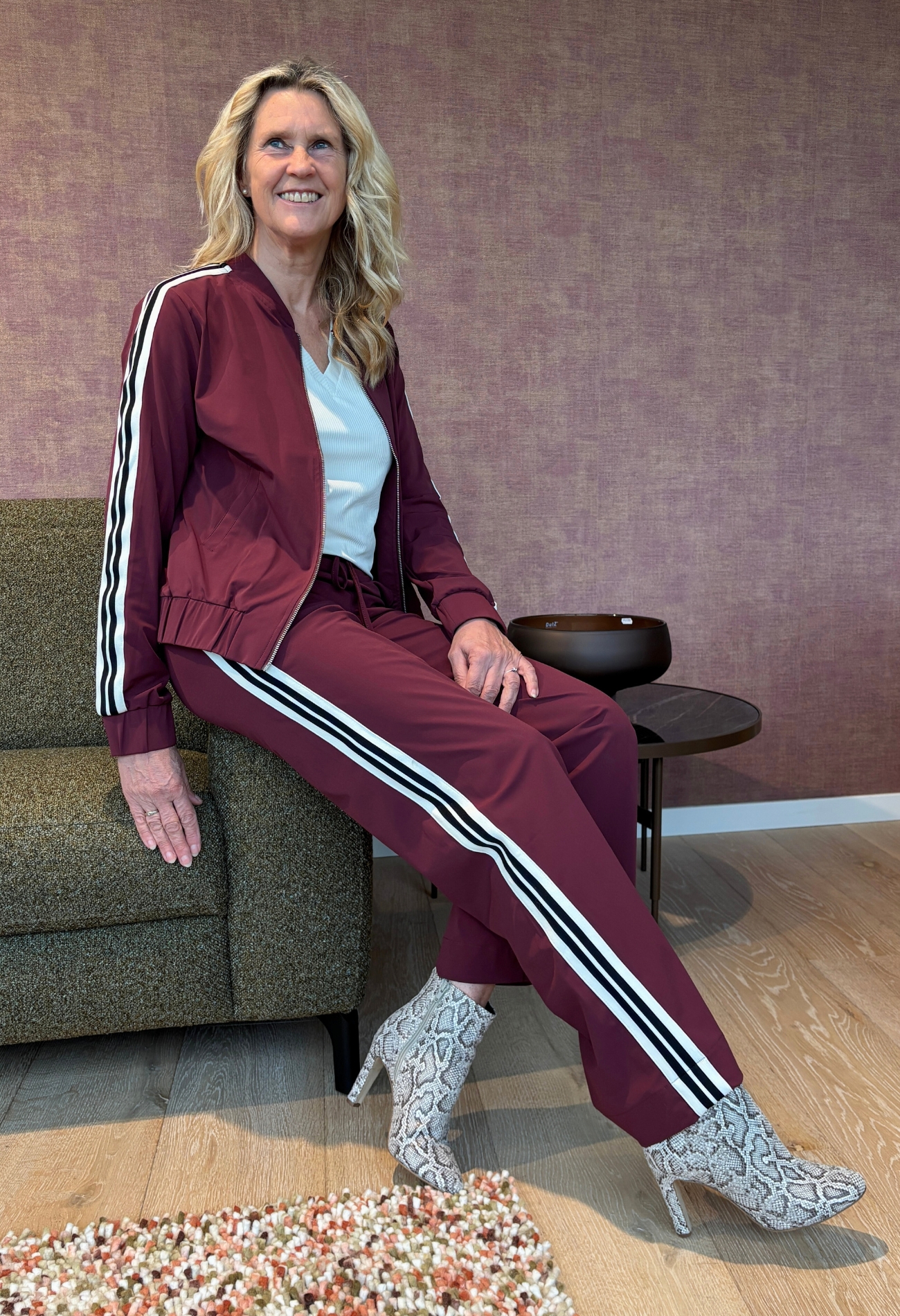 Trendy broek van Mi Piace met een wide fit en een gestreepte bies op de zijkant van de broek. Met fijne steekzakken en de welbekende sier klepzakjes achterop. Wist je dat we het hele pak voor je hebben? Stijl het af met een sporty blazer of net jack in bombermodel.