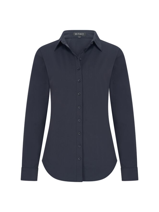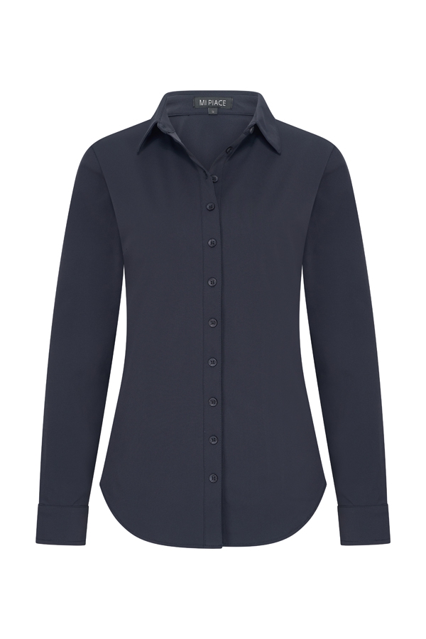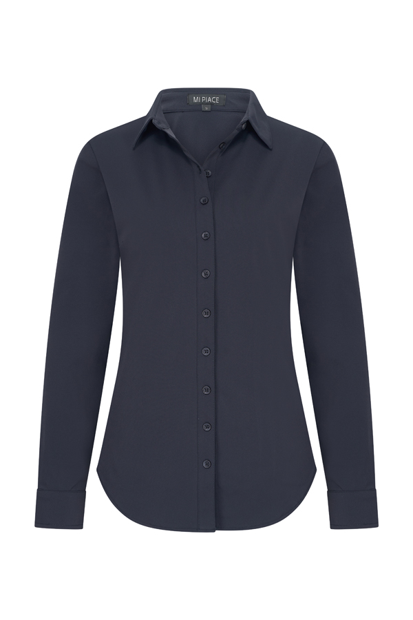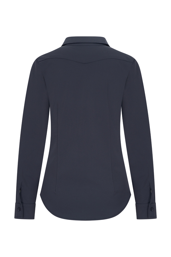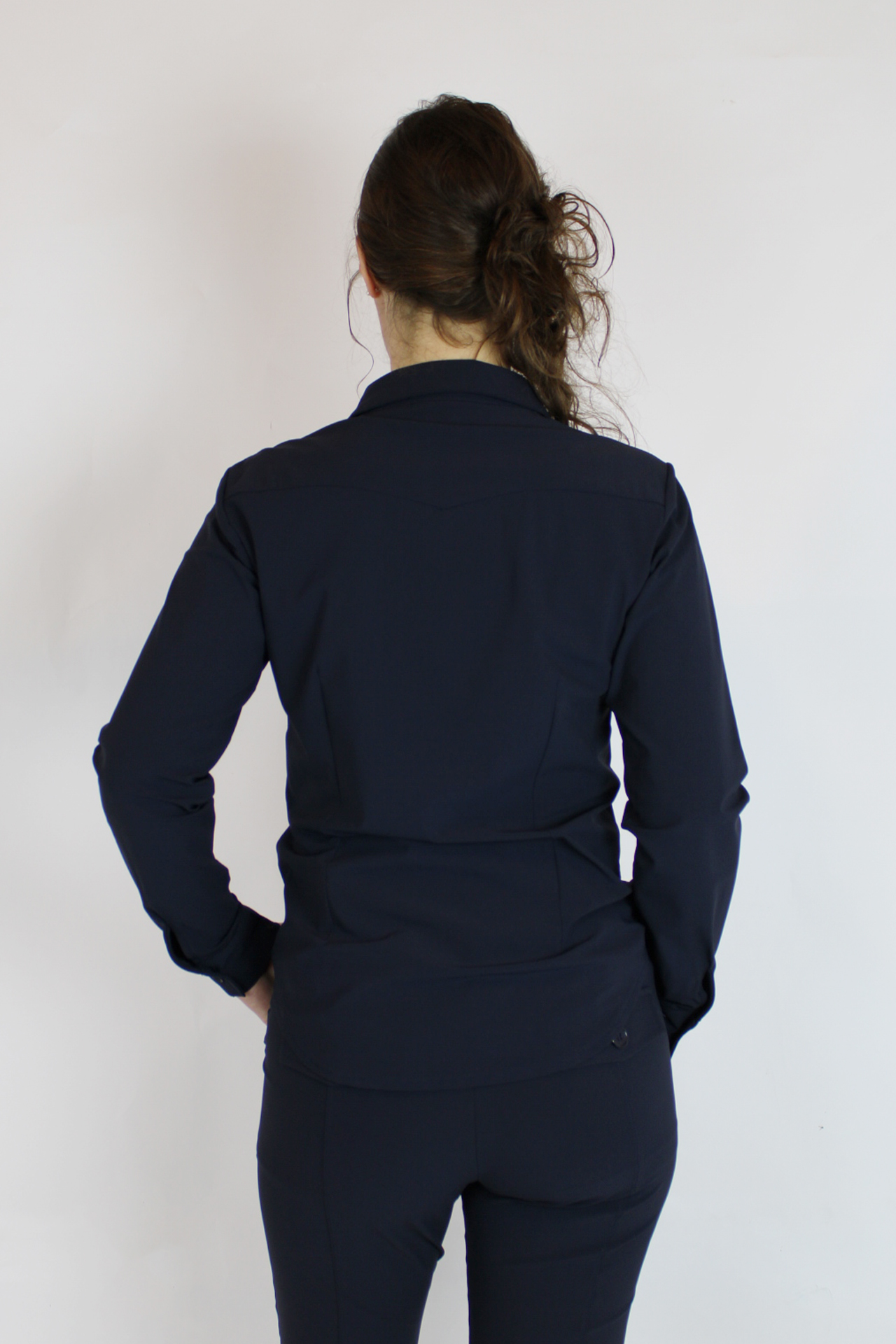 Travelstof blouse voor dames. De blouse is van travel stof en valt op maat. Met een klein punt kraagje.