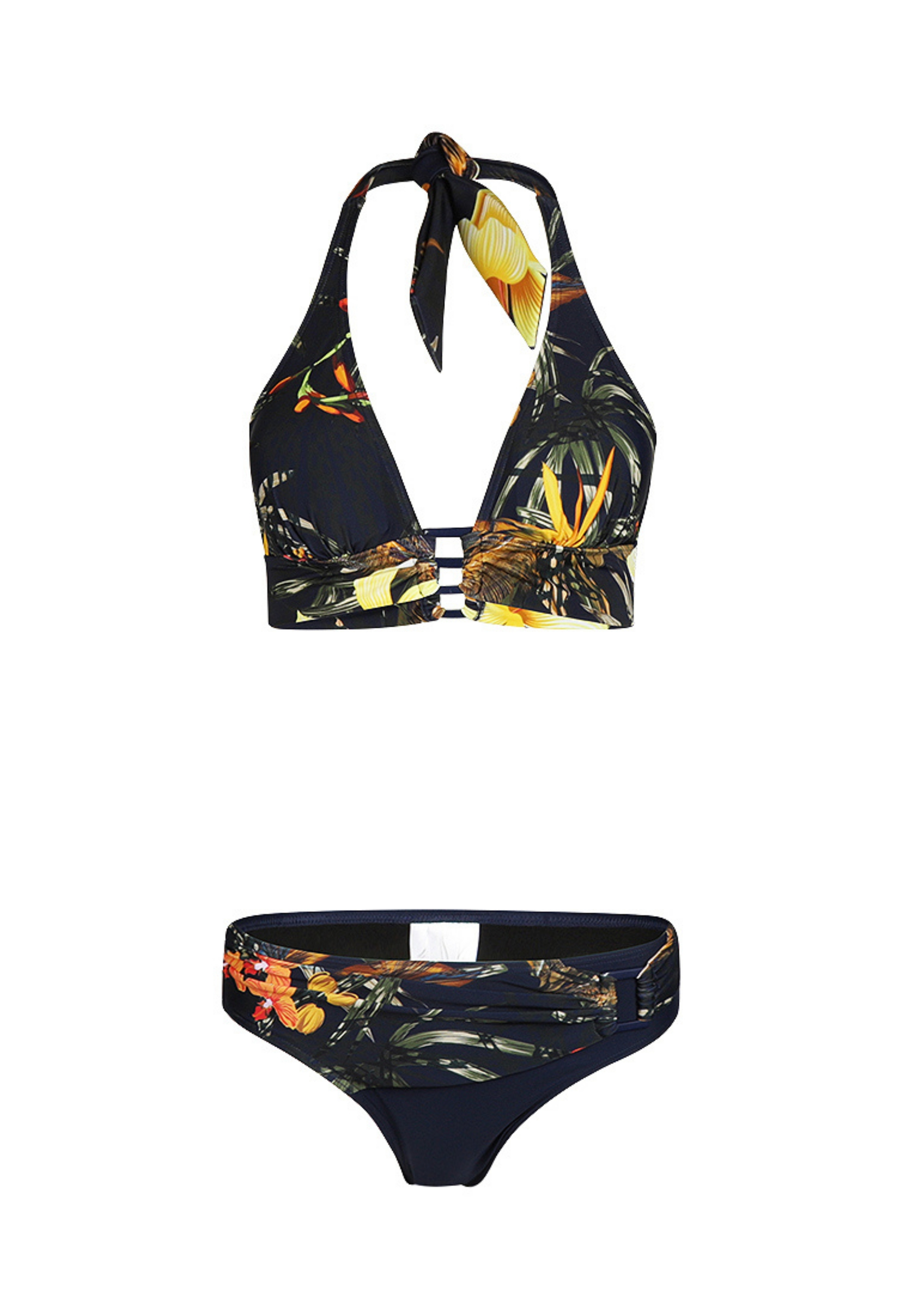 De halter bikini van Mila uit de zomercollectie is de perfecte keuze voor een stijlvolle strandlook. Deze bikini heeft een opvallende buckle detail op zowel de top als het broekje, wat zorgt voor een moderne en chique uitstraling. De halterband biedt extra ondersteuning en een flatterende pasvorm. Gemaakt van hoogwaardige materialen voor ultiem comfort en duurzaamheid. Combineer deze bikini met de P55230-23 Maxi Beach Cover Jurk voor een complete en elegante strandoutfit.