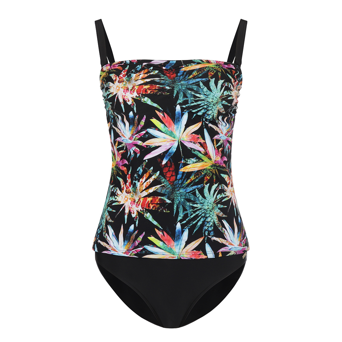 Deze bandeau tankini heeft een top met verstelbare schouderbandjes en gevoerde voorgevormde cups verwerkt in een binnentop. Geleverd met net broekje in slip model.