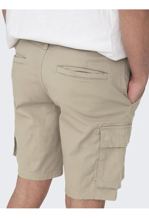 Deze cargo short is een robuust model met 2 steekzakken en achterop 2 paspelzakken. En niet te vergeten de zakken op de zijkanten.