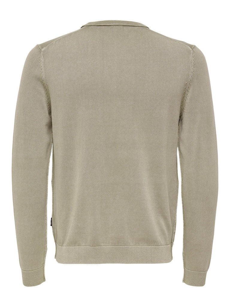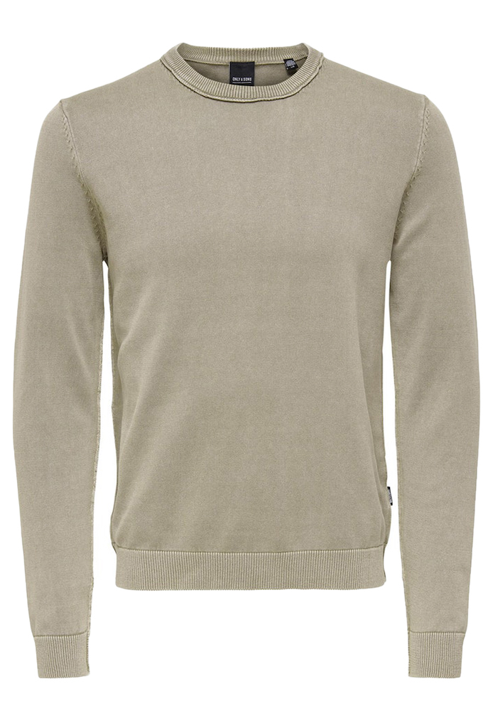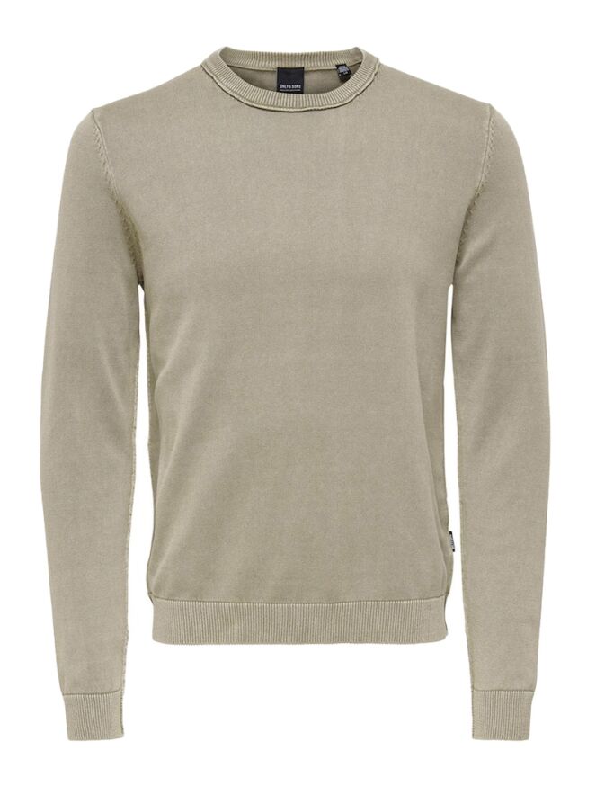 Crew neck trui van Only & Sons. De trui is fijn gebreid en heeft een ronde nek. Materiaal: 100% katoen. Wassen op 30 graden, niet bleken, niet in de droger, kan gestreken worden.