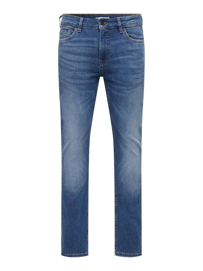 Dit is een 5 pocket jeans in een mooie heldere blauwe denim kleur. Het model is slim fit met rechte broekspijpen en een smalle beenopening aan de onderkant.