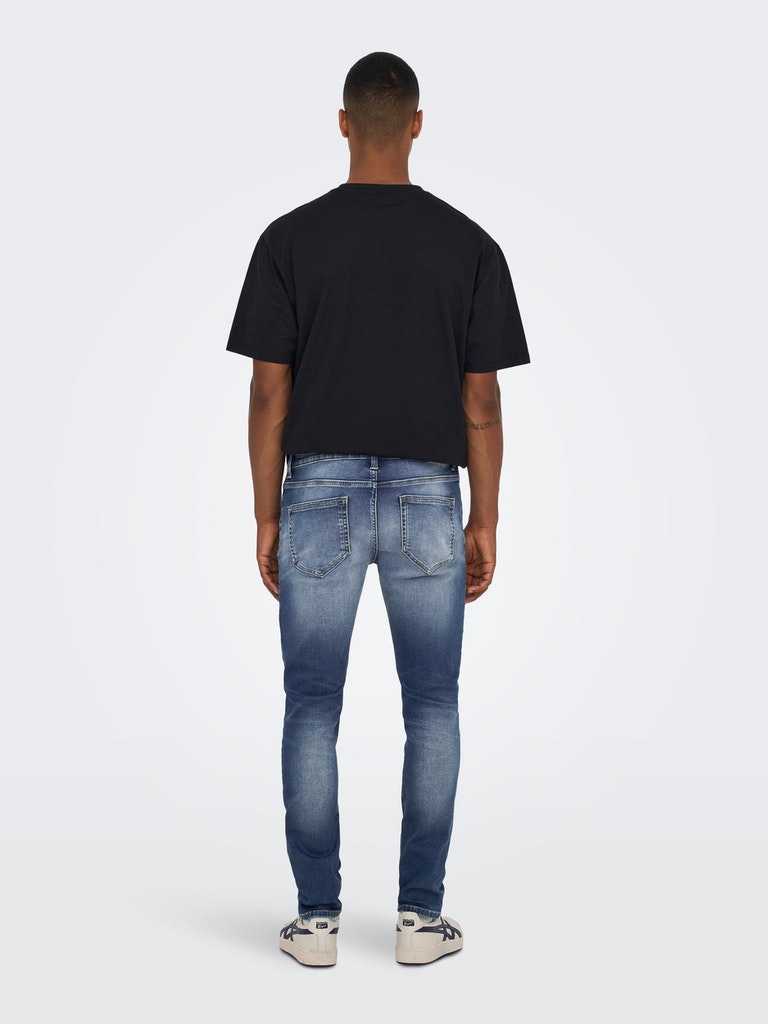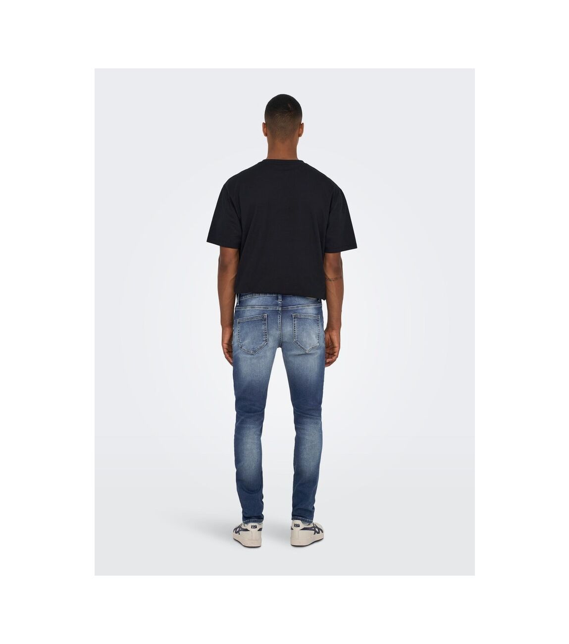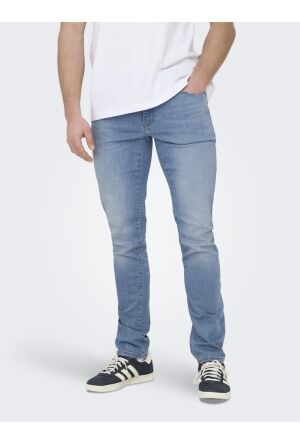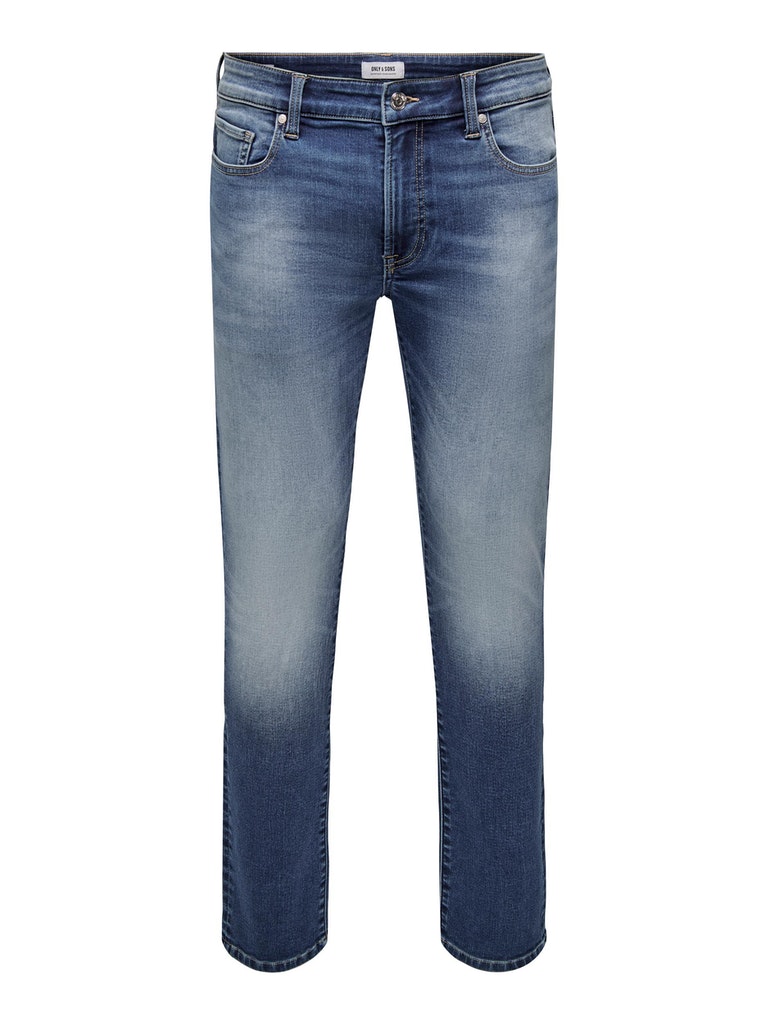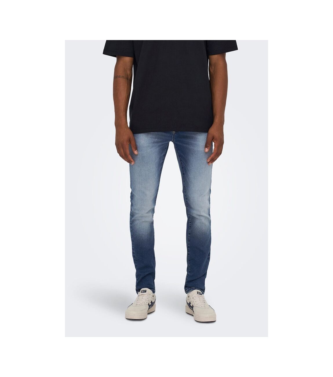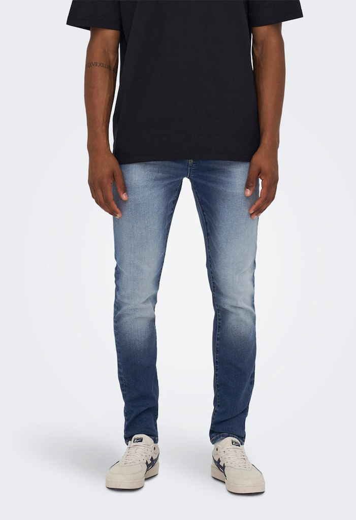 Slim-fit jeans van ONLY & SONS. Deze slim fit jeans met de naam LOOM is een klassieke 5-pocket jeans met rits sluiting en riemlussen. De jeans heeft een lage en slanke taille, en een smalle beenopening. Deze jeans is gemaakt van een zacht stretch denim om ervoor te zorgen dat hij de hele dag comfortabel blijft zitten, en daardoor makkelijk te dragen is. De jeans heeft een midden blauwe indigo wassing.