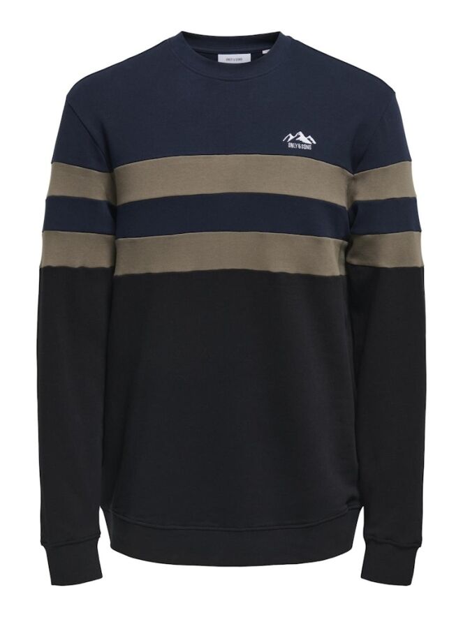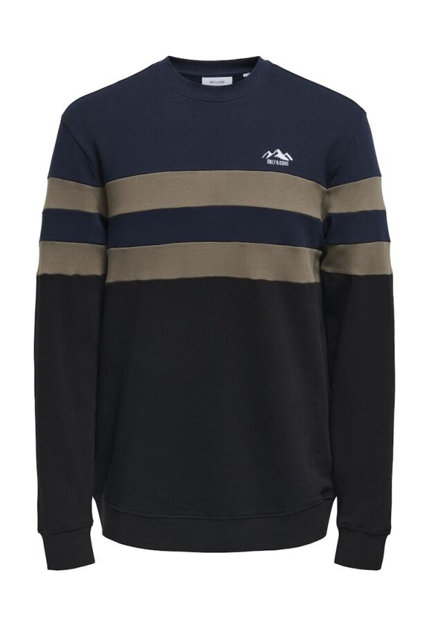 Deze sweater heeft een color blocking design en op de borst een borduring van only & sons.