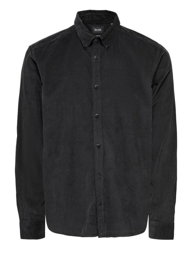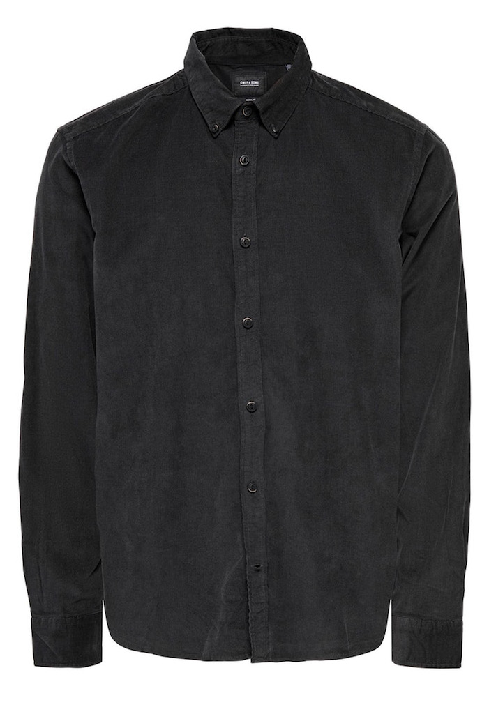 Corduroy overhemd van Only and Sons. Het overhemd is van dunner rib stof en heeft een casual iets losse fit. Materiaal: 100% katoen. Wassen op 30 graden, niet bleken, niet in de droger, kan gestreken worden.