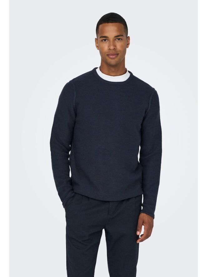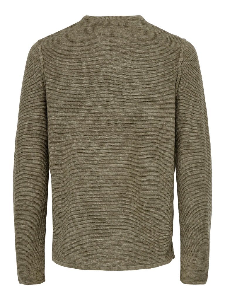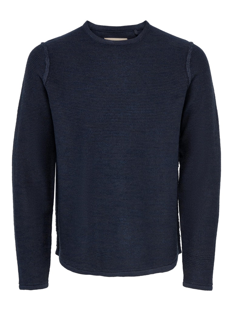 Gebreide trui met lange mouwen, ronde halslijn en valt op een normale lengte. De naden zijn naar buiten toe gestikt voor een stoer detail. Dit product is gemaakt van biologisch katoen. Biologisch katoen wordt verbouwd zonder het gebruik van schadelijke chemicaliën. Biologische katoenteelt beschermt natuurlijke hulpbronnen en boeren.