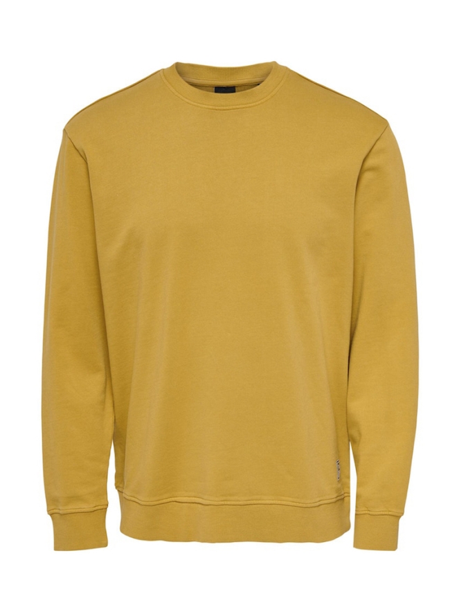 Oker kleurige sweater van ONLY & SONS. Deze sweater heeft een ronde hals, lange mouwen en een regular fit.
