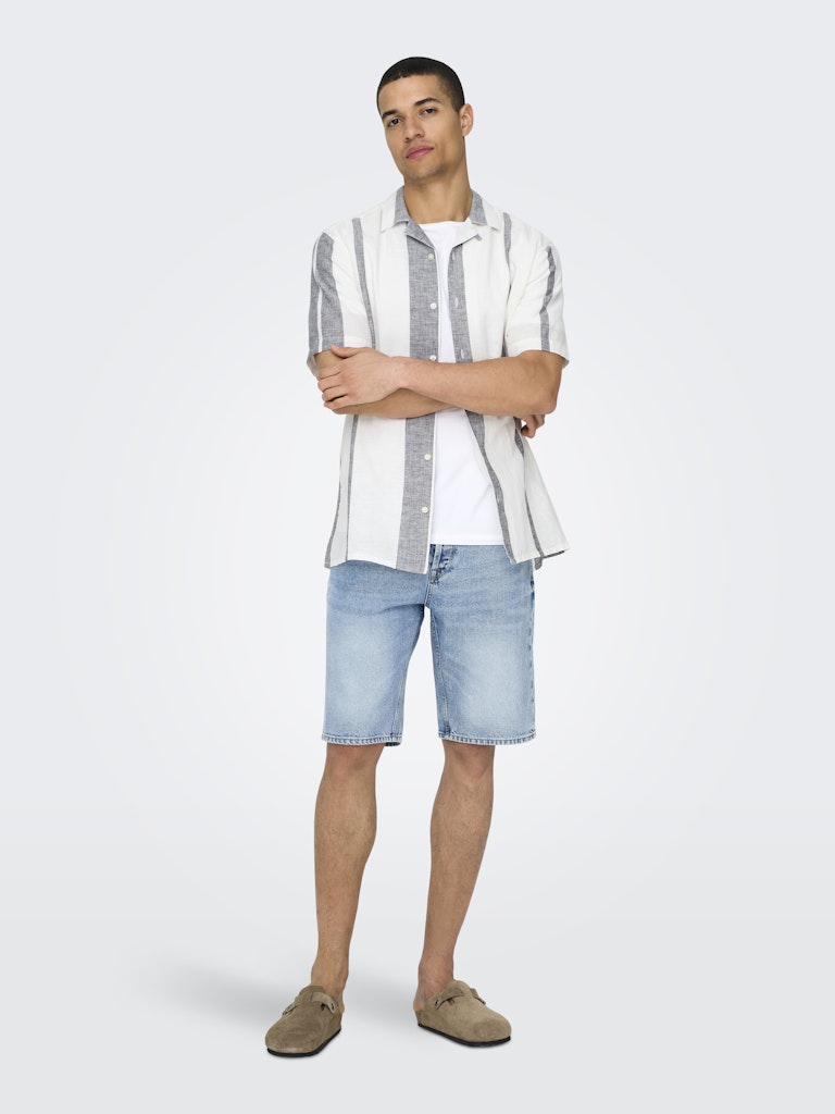 Dit overhemd met korte mouw draagt fijn met warmer weer door de samenstelling van linnen en katoen. Het overhemd is dun en heeft een tijdloze trendy uitstraling.